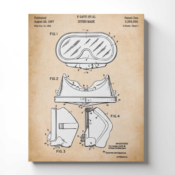 Scuba Gift, Diving Mask Patent Canvas Print, Ready To Hang for Living Room Home Wall Decor, C2666