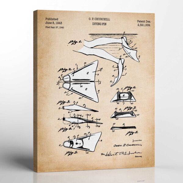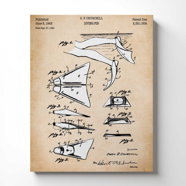Gifts for Scuba Divers, Diving Fins Patent Canvas Print, Ready To Hang for Living Room Home Wall Decor, C2665