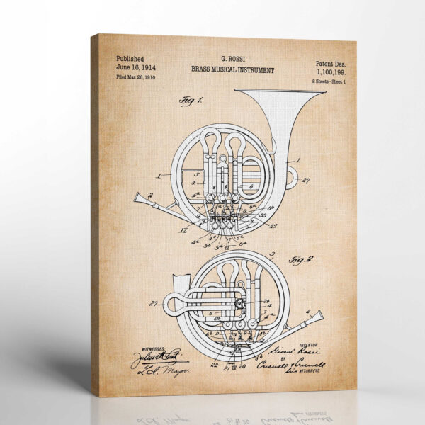 French Horn Gifts, French Horn Patent Canvas Print, Ready To Hang for Living Room Home Wall Decor, C2588