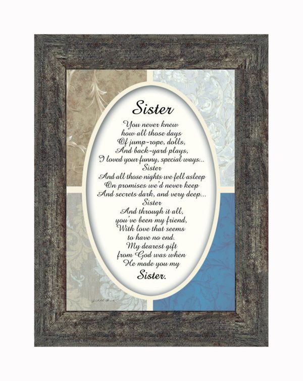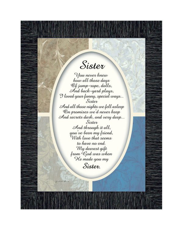 Sister, For My Sister, Special Gift for Sister from Sibling, Framed Poem, 7x9 77909