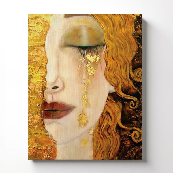 Golden Tears Canvas Frame by Gustav Klimt Wall Art, Ready To Hang for Living Room Home Wall Decor, C2430