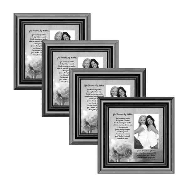 Picture Frame Set, 4 Piece Customizable Gallery Multi pack, 1-5x7, 1-8x8, 1-4x10, 1-4x4, for Tabletop or Wall Display