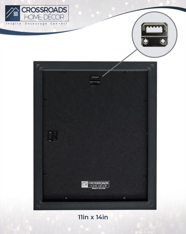 OUR PROMISE is that you will be completely satisfied with your order. We will make and pack your frame with care, but if you have any concerns, connect with us through your order page and we will make it right! Our frames include a glass front and an easy to use wall hanger. The finished frame size is 13″x16″ and holds an 11×14 print. Proudly made in the USA.