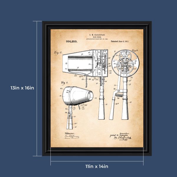 Vintage Hair Dryer Patent Print, Unique Art for The Salon Hair Dryer Decor or for Your Home Bathroom Wall Decor, 11×14, 2134