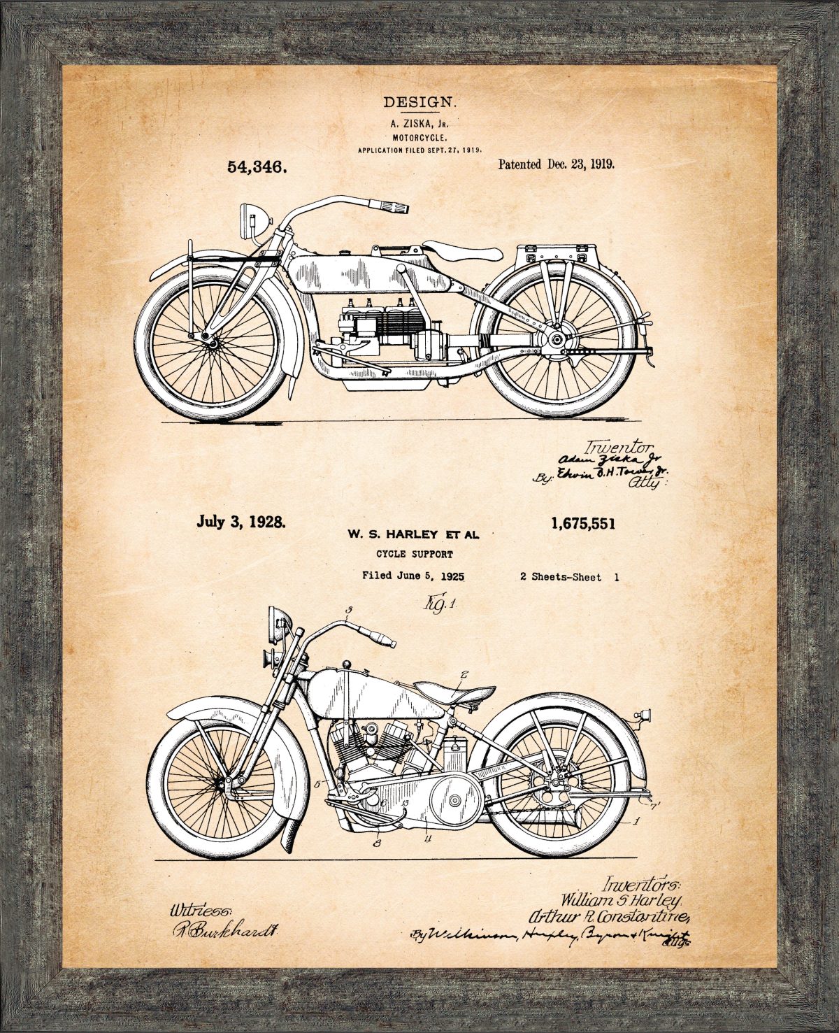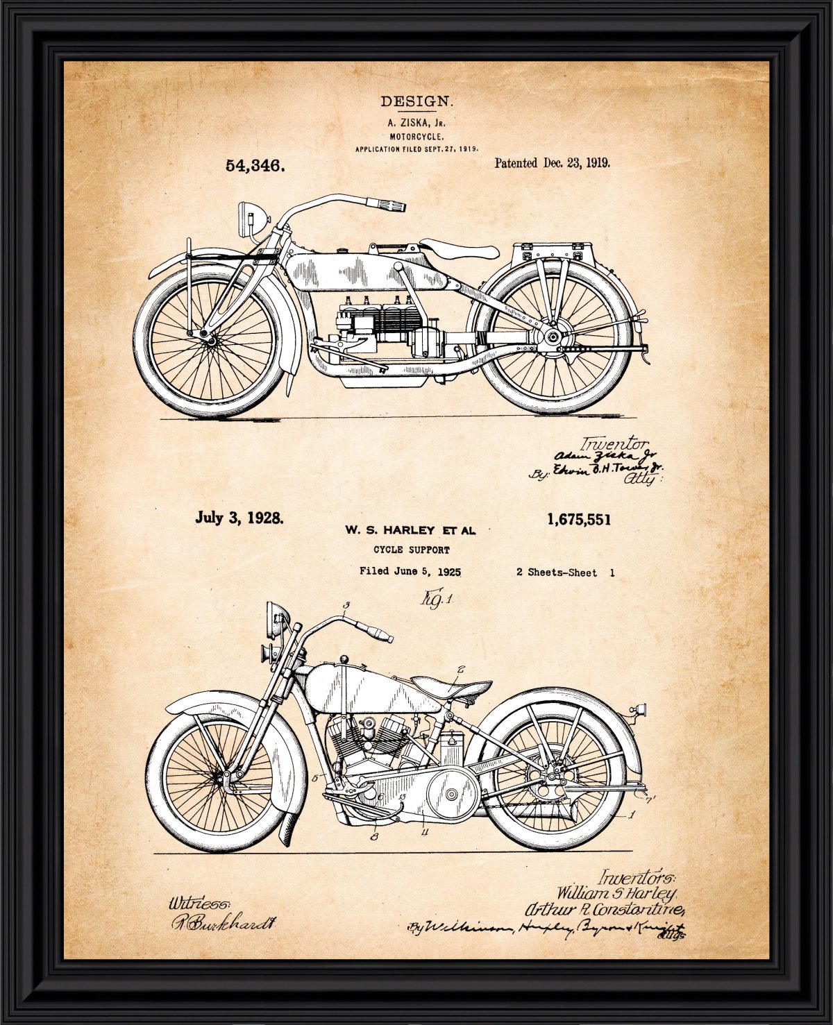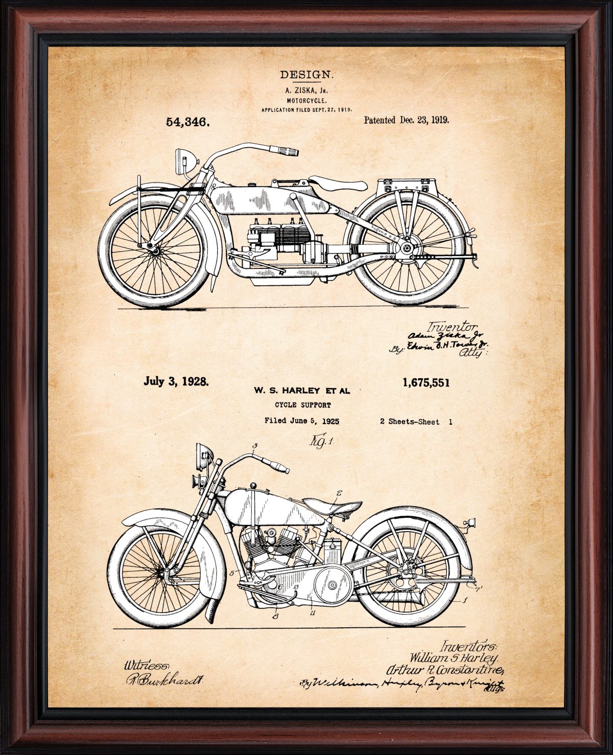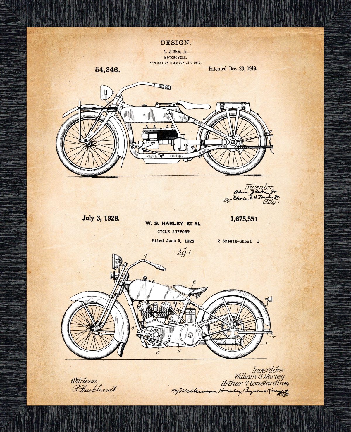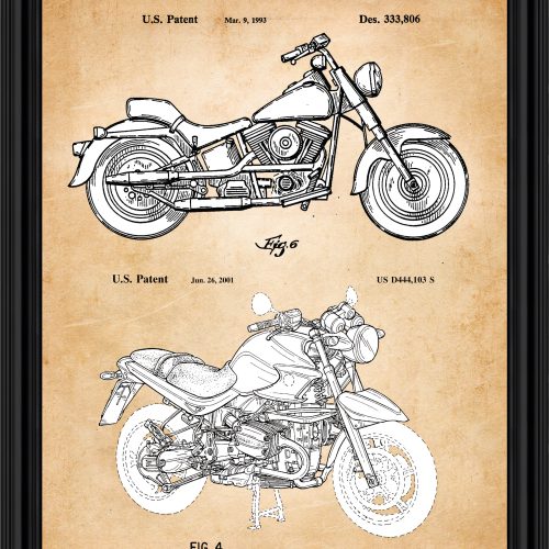 Crossroads Home Decor Harley Davidson Decor Framed Engine and 2006 Framed Motorcycle Patent Print, Unique Harley Davidson Wall Art, Garage Decor, Motorcycle Gifts for Men