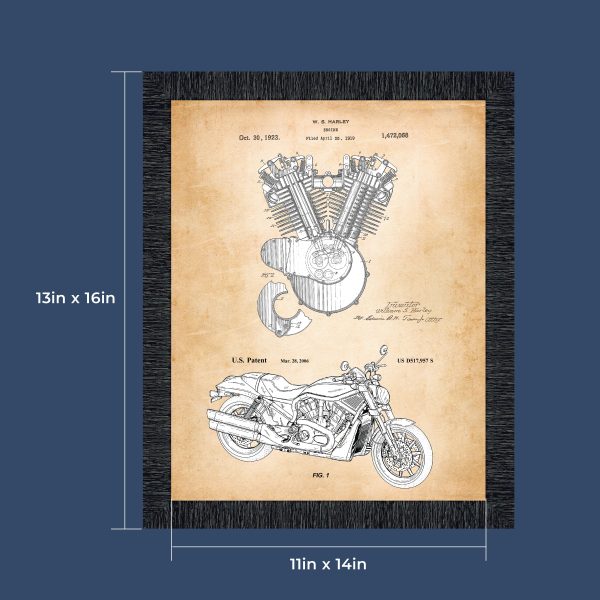 Harley Davidson Decor Framed Engine and 2006 Framed Motorcycle Patent Print, Unique Harley Davidson Wall Art, Garage Decor, Motorcycle Gifts for Men, 11×14, 2137