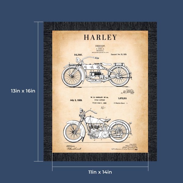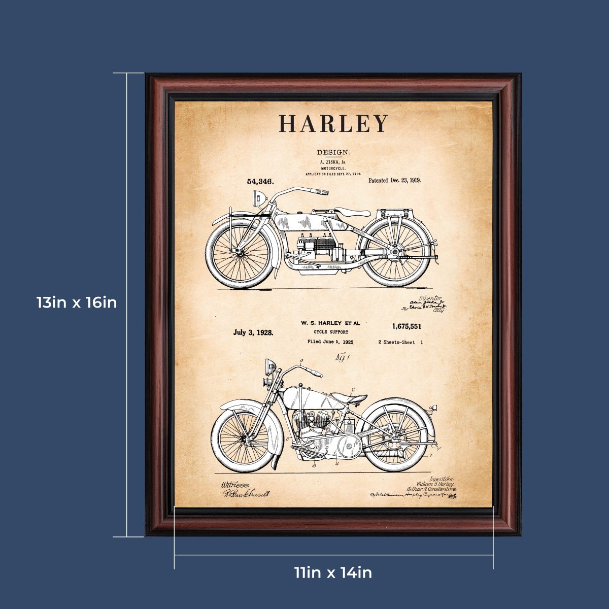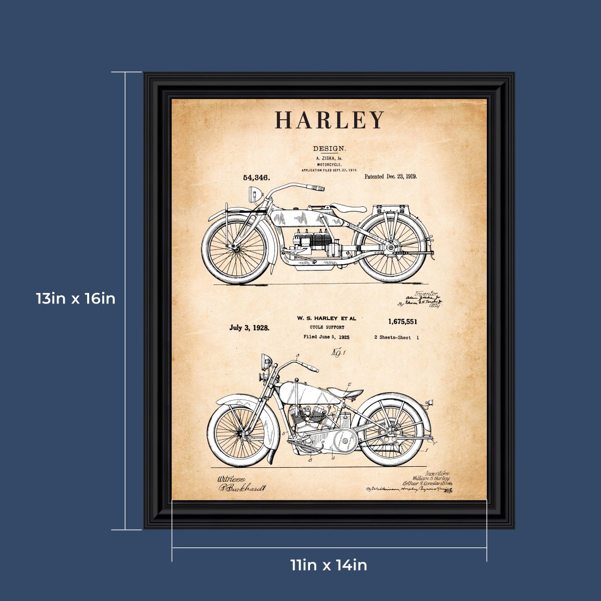 Crossroads Home Decor Harley Davidson Decor Collection of Motorcycle Wall Decor, Framed Motorcycle Patent Prints, Unique Harley Davidson Wall Art, Vintage Motorcycle Gifts for Men