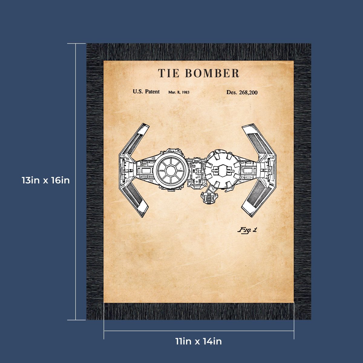 Star Wars Tie Bomber Patent Framed Print, Unique Star Wars Ships Decor, Gift Idea for The Star Wars Fan of All Ages, Add to Your Star Wars Ship Collection, 11×14, 2150