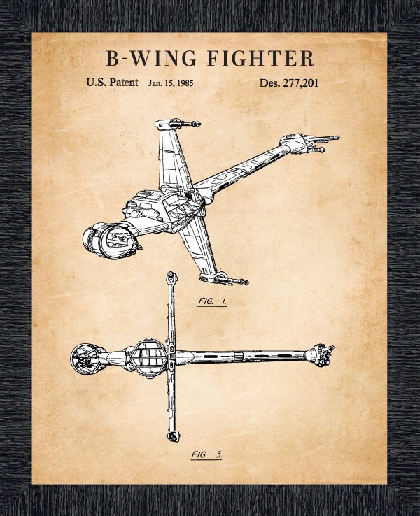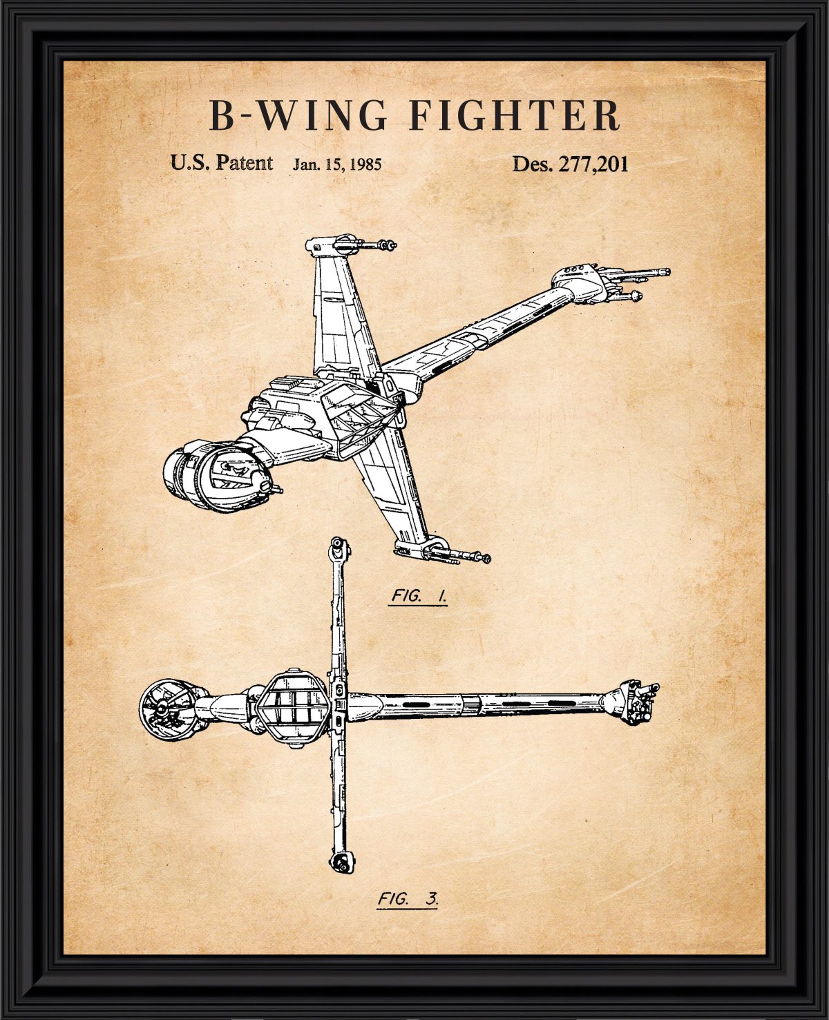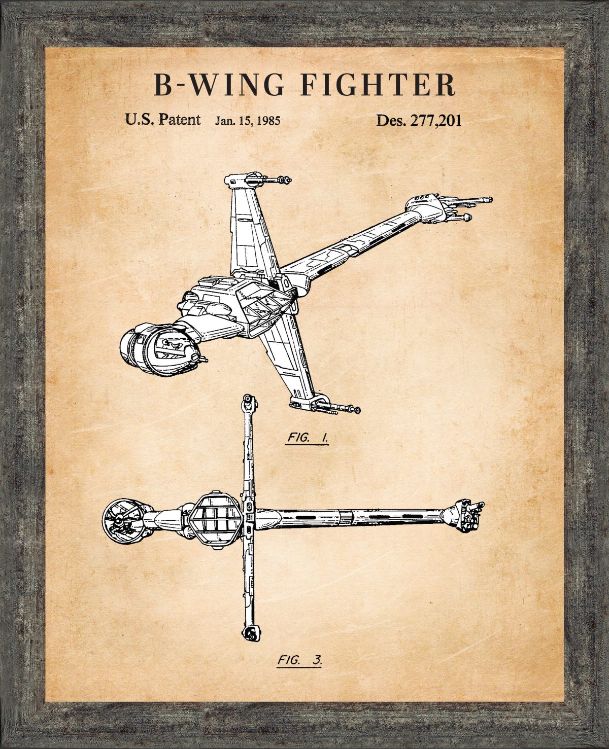 Star Wars B Wing Bomber Framed Patent Print, Star Wars Vintage Collection, Unique Gift Idea, 11×14, 2153