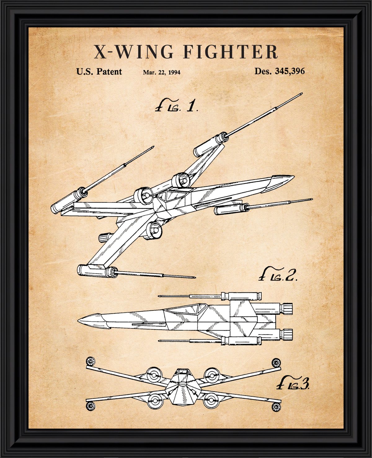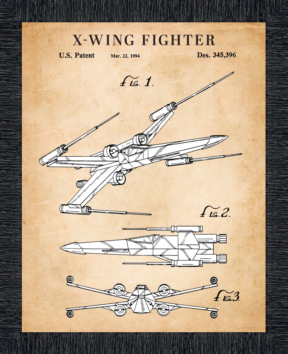 ADD RETRO STYLE to you home decor with this Star Wars X-Wing patent print. This print would be a great addition to your office, home office or man cave decor. Birthday or Christmas gift idea for the Star Wars Collector.