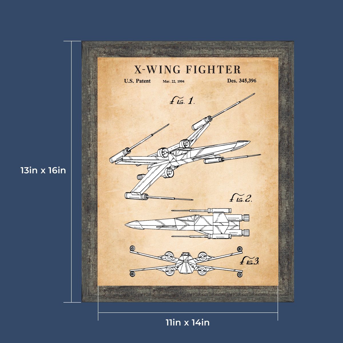 Crossroads Home Decor Star Wars X-Wing Fighter Framed Patent Print, Add to Your Star Wars Vintage Collection, Unique Addition to Your Home Decor or Gift for Star Wars Fans