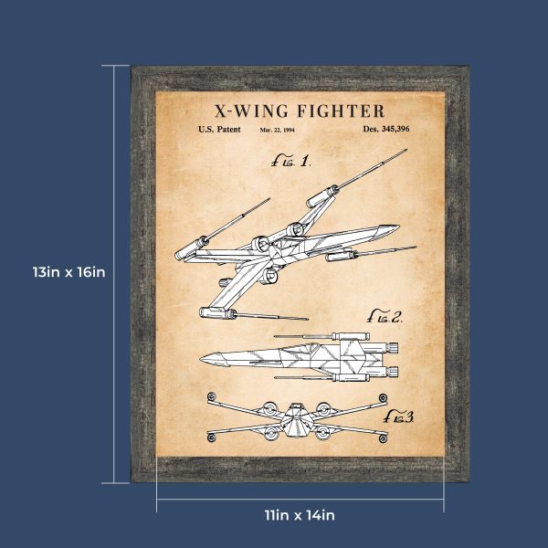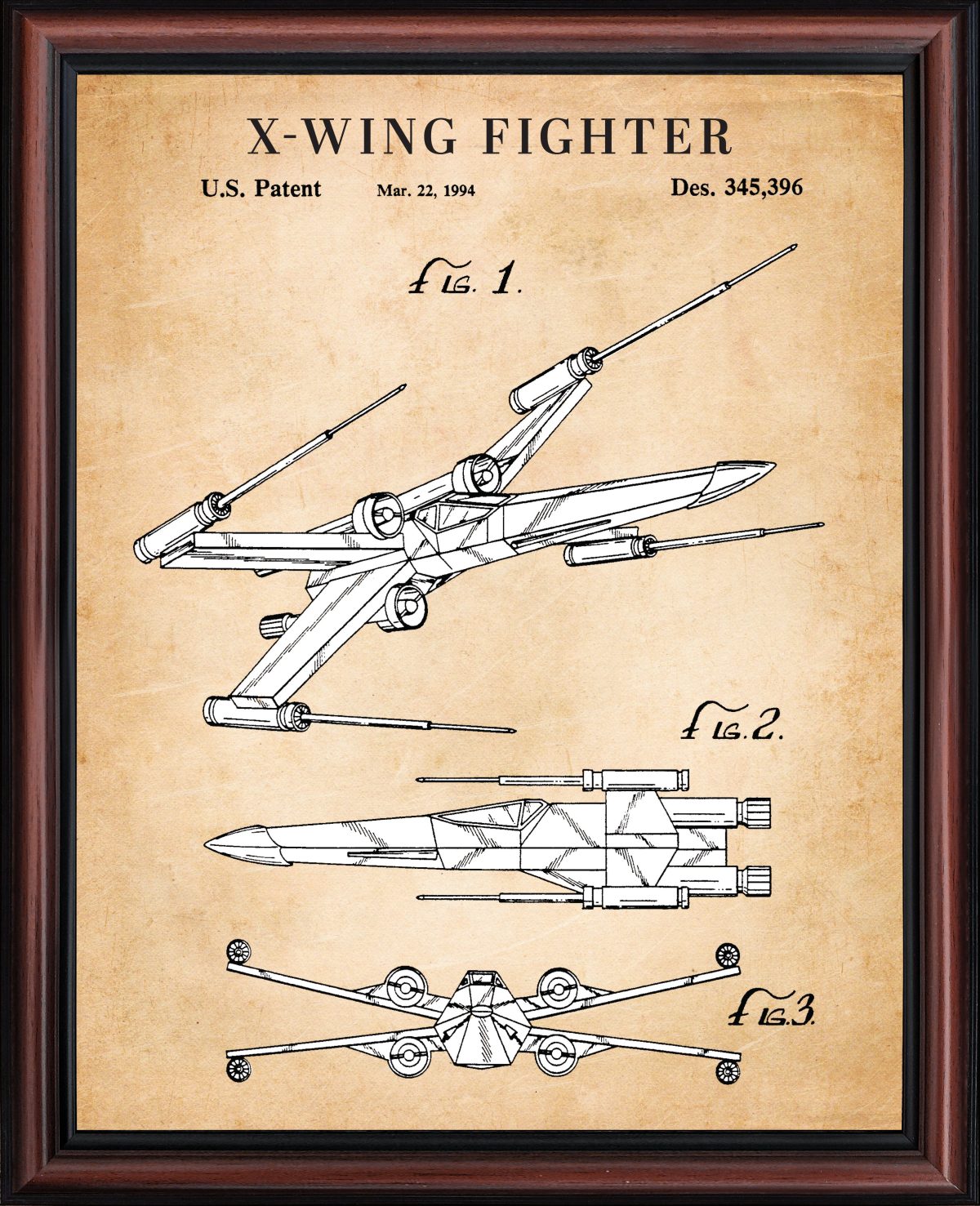 Star Wars X-Wing Fighter Framed Patent Print, Add to Your Star Wars Vintage Collection, Unique Addition to Your Home Decor or Gift for Star Wars Fans, 11×14, 2156