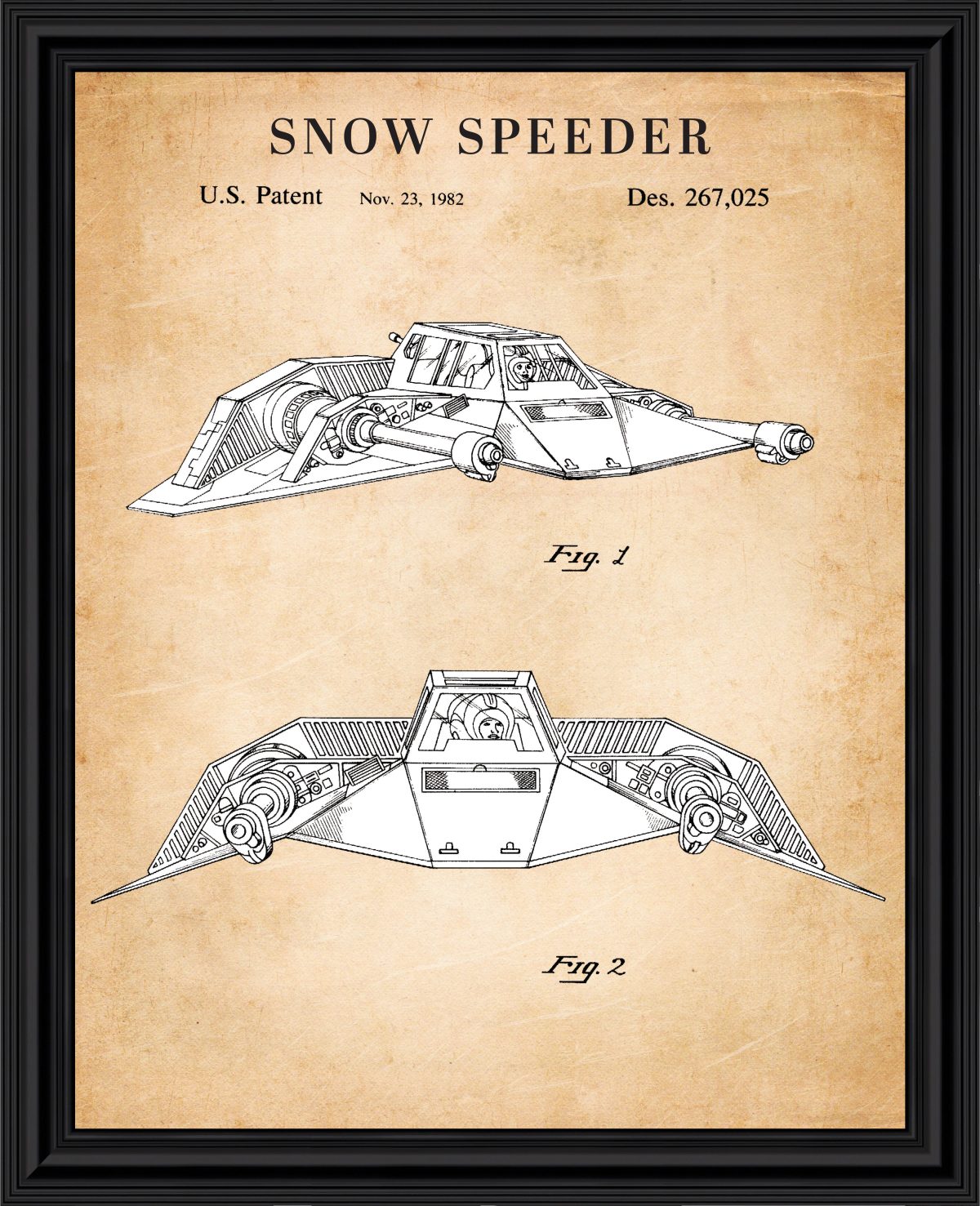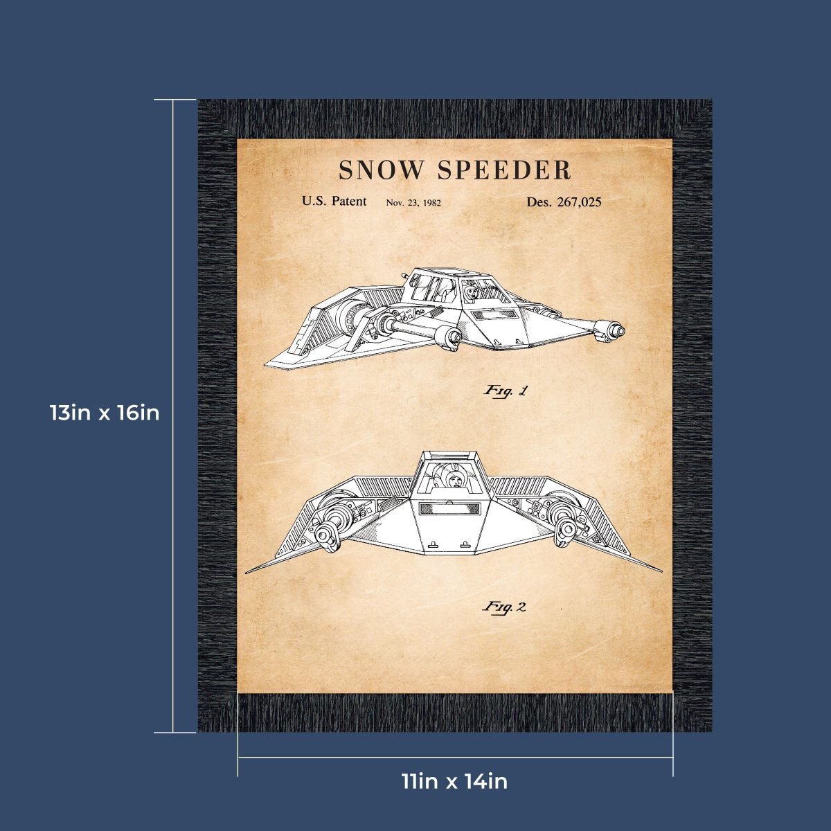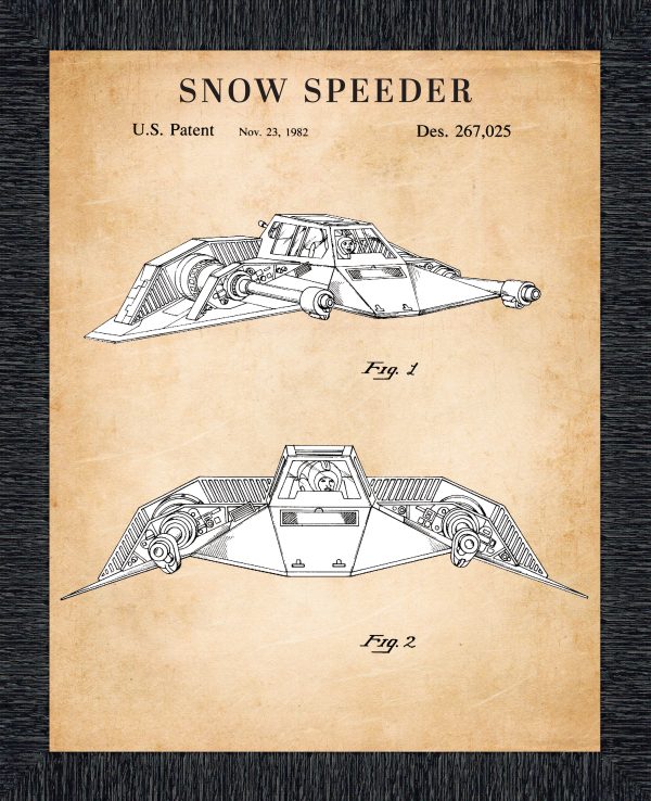 Star Wars Snowspeeder Framed Patent Print, Add to Your Star Wars The Vintage Collection, Great Addition to Your Retro Star Wars Collection, Great Decor for Man Cave or Home Office, 11×14, 2157