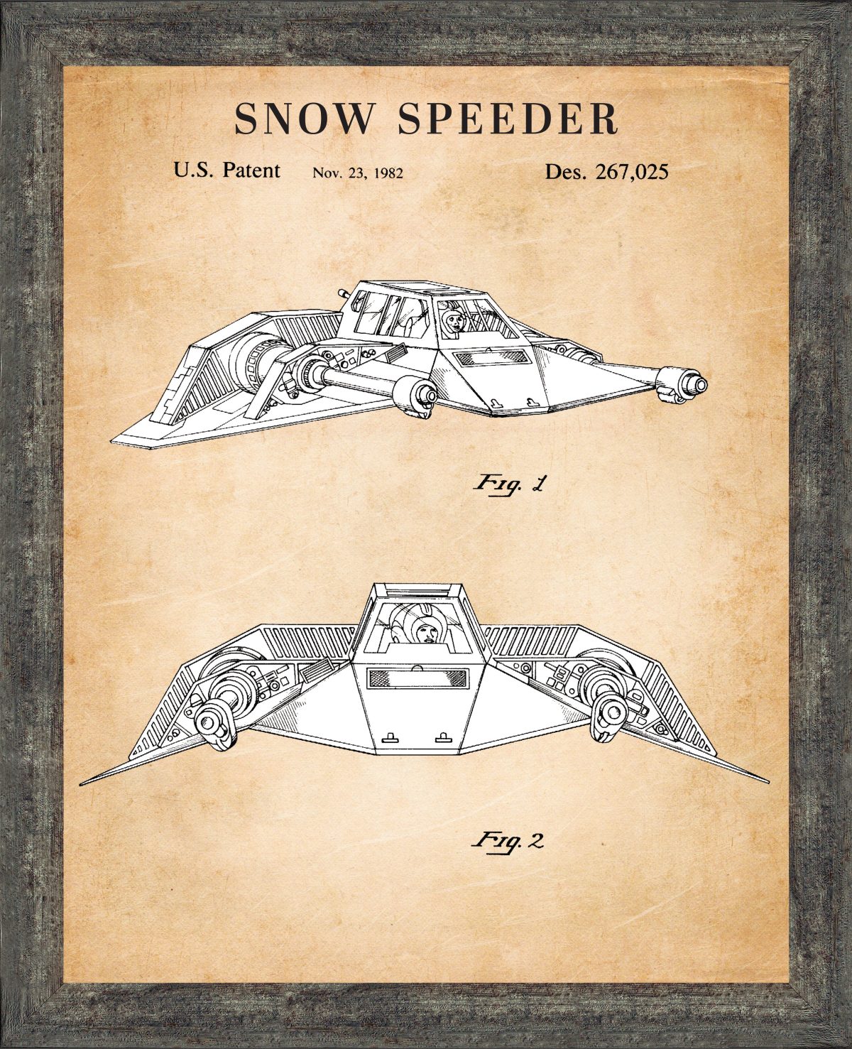 ADD RETRO STYLE to your home decor with the Star Wars Snowspeeder patent print. This print would be a great addition to your office, home office or man cave decor.