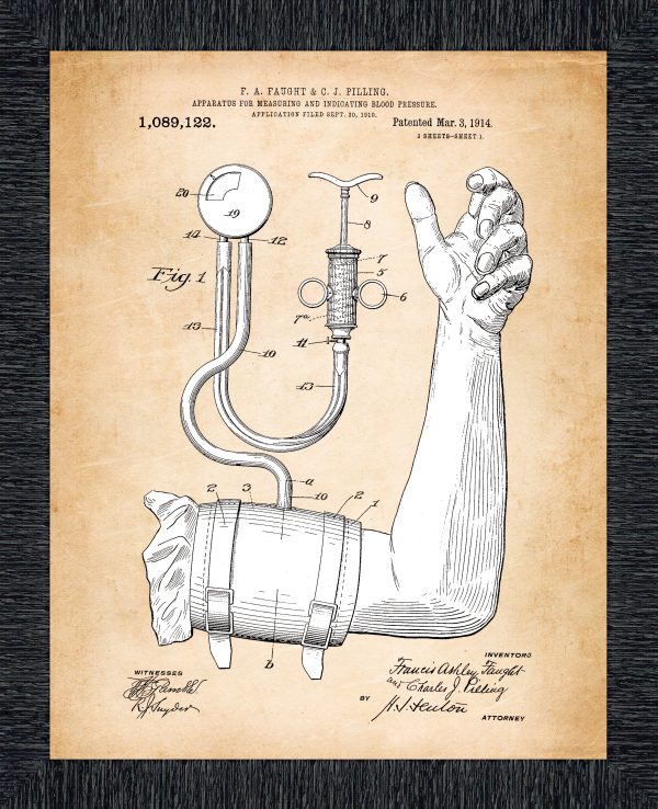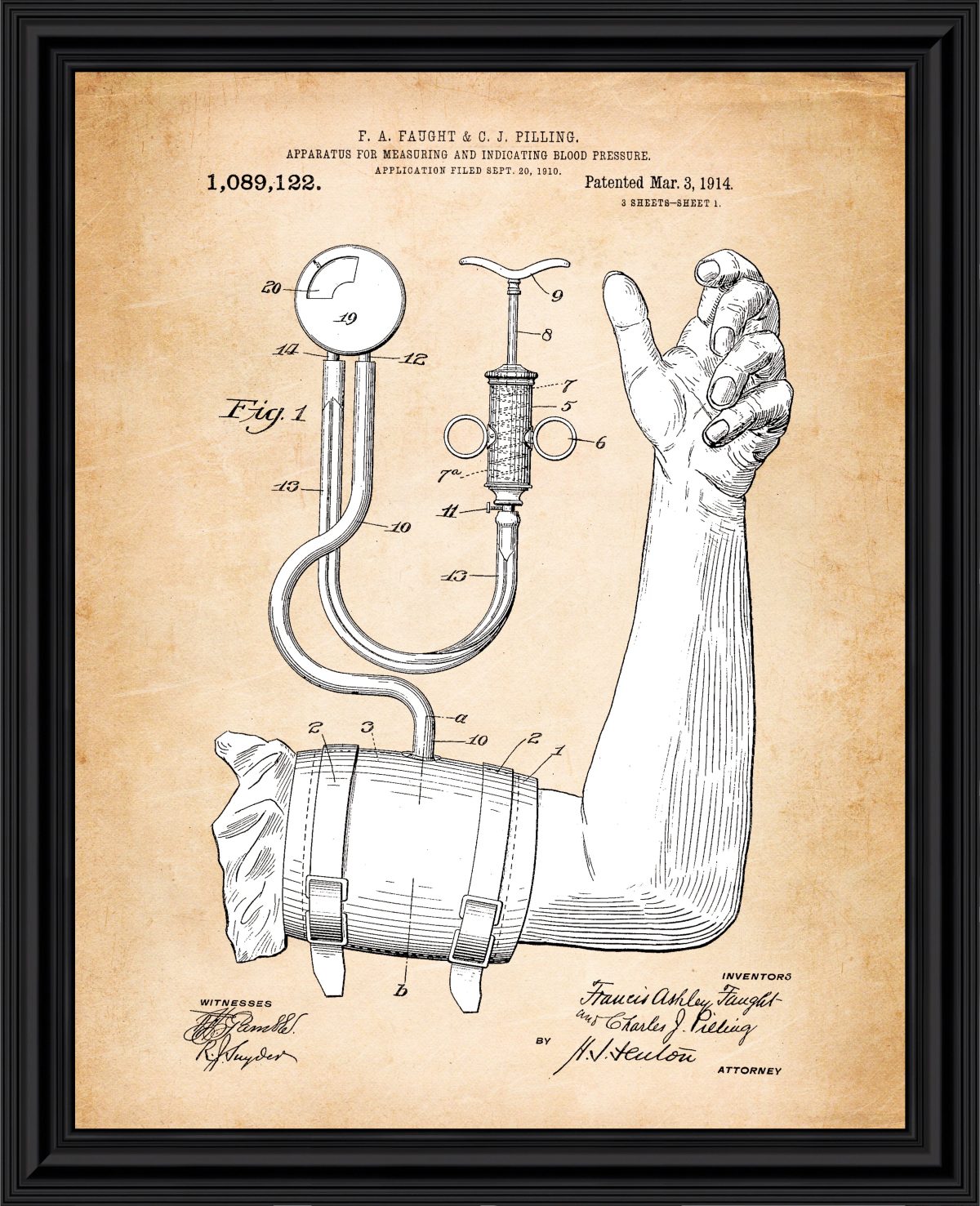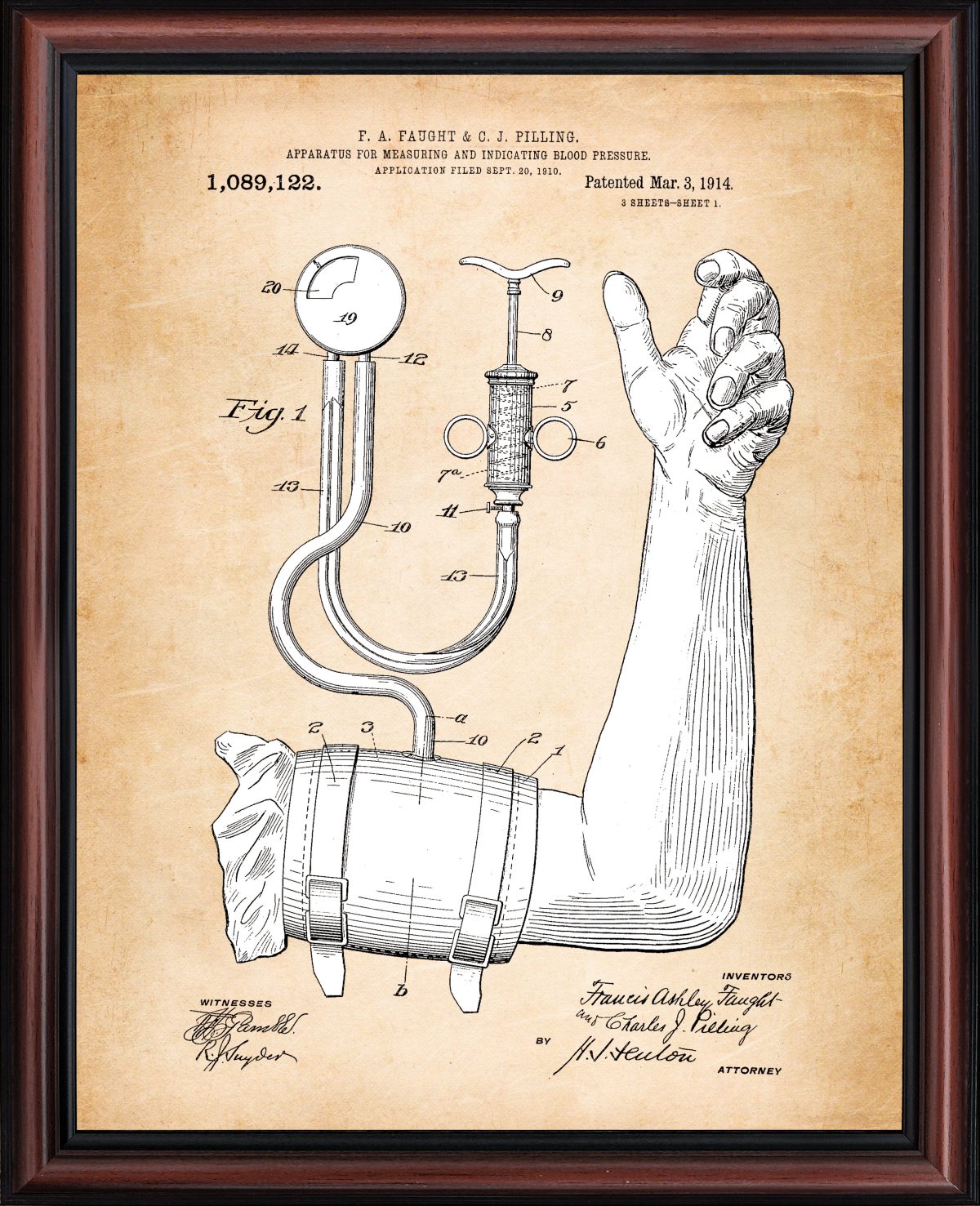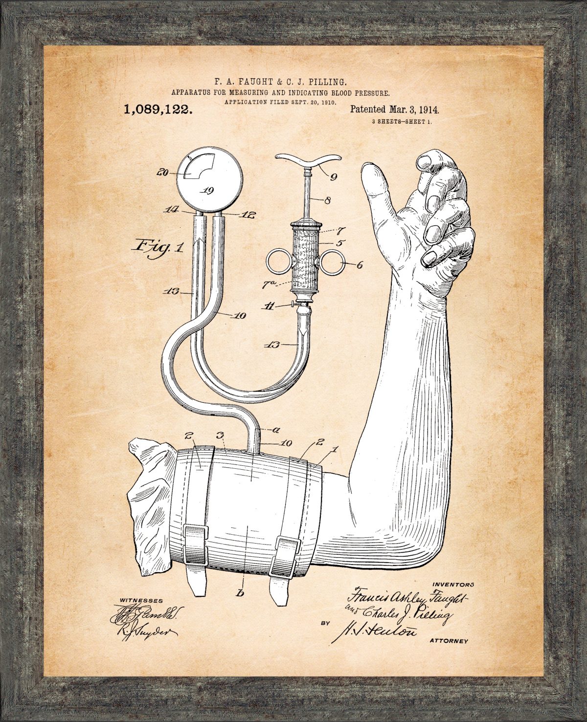 GREAT VINTAGE GIFT to spice up your office or home office decor. Framed patent of stethoscope, blood pressure monitor and intravencus machine will go with any decor style. Medical school graduation gift for new doctors or nursing school gift for new nurses.