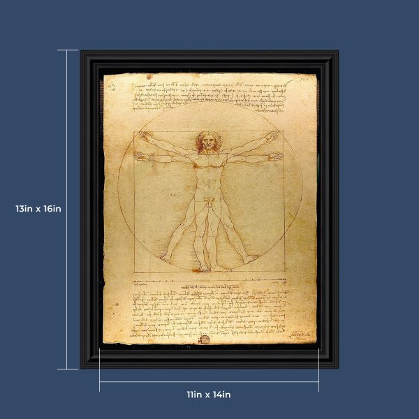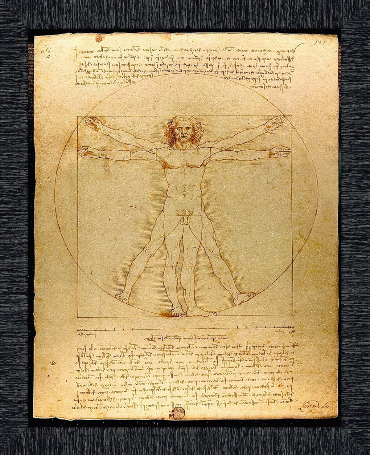 Crossroads Home Decor The Vitruvian Man Leonardo Da Vinci, World Famous Wall Art Collection, Fine Art Drawing, Framed Medical Posters for Your Medical Office Decor, Proportions of The Human Figure Drawing