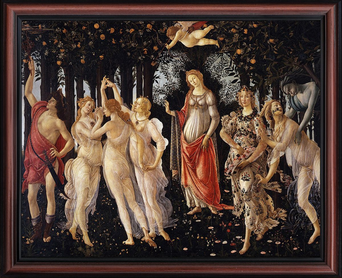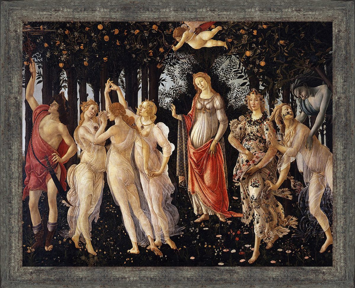 La Primavera, Allegory of Spring Framed Art Print by Sandro Botticelli, World Famous Wall Art Collection, Great Living Room of Kitchen Art, 11×14, 2475