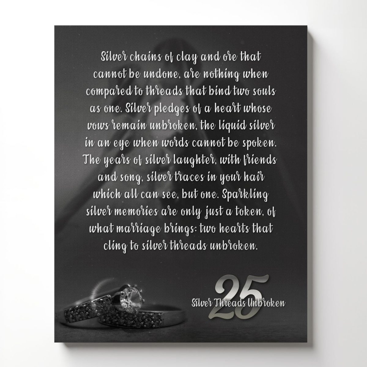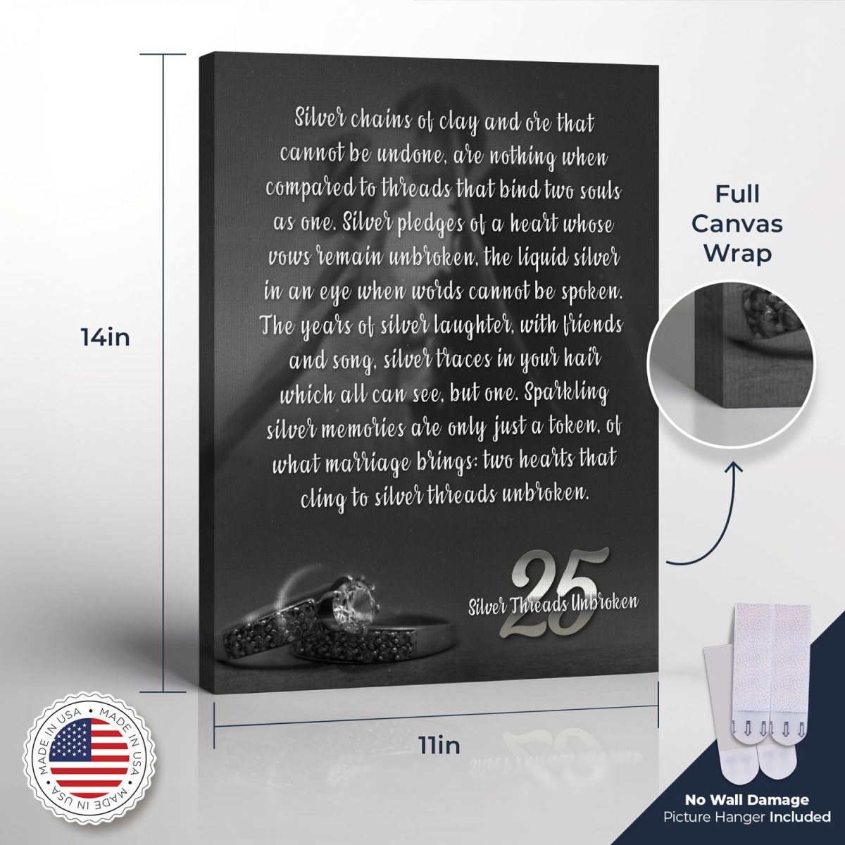 25th Anniversary Canvas frame, 25th Wedding Anniversary Present, 25th Anniversary Keepsake for Couple, Ready To Hang for Living Room Home Wall Decor, C2170