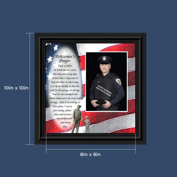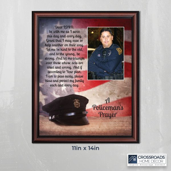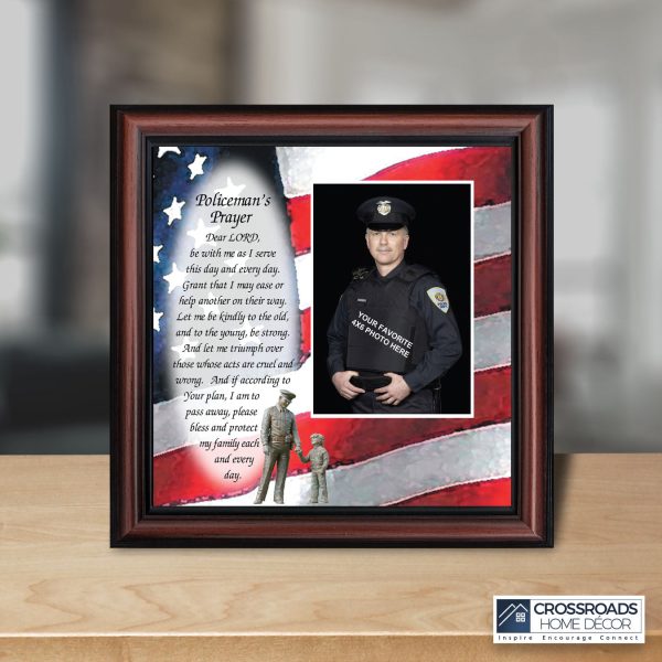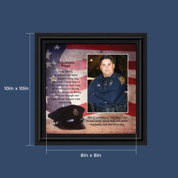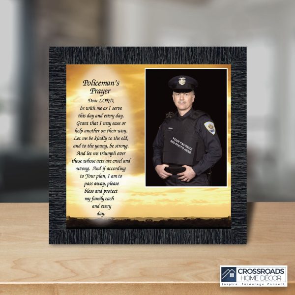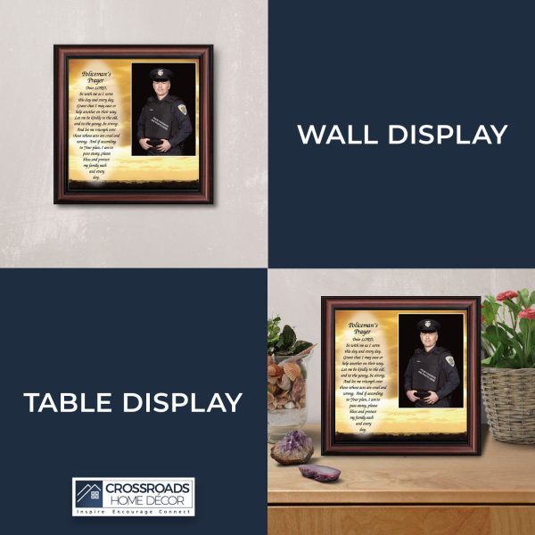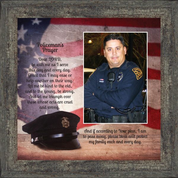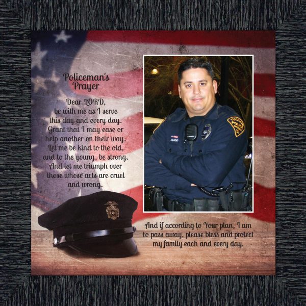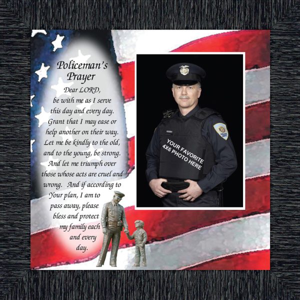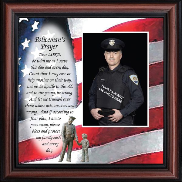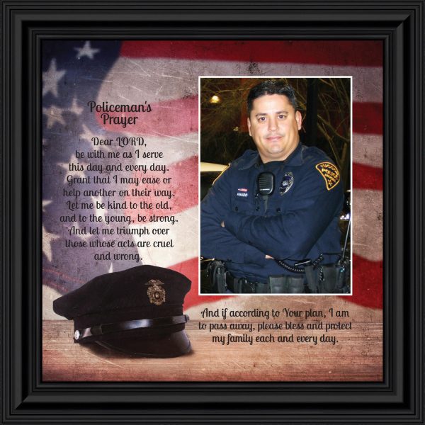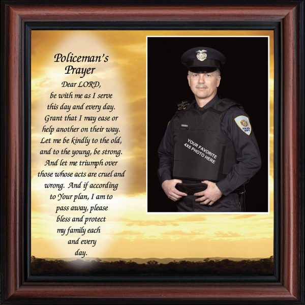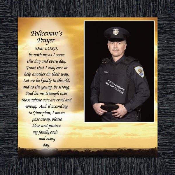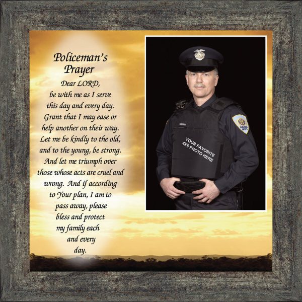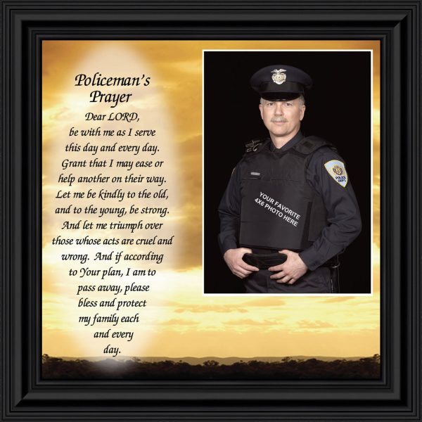 “THE POLICE OFFICER’S PRAYER” picture frame is a unique and meaningful gift for an officer in training or a gift for a police academy graduate. Use as part of your academy graduation party decorations and then enjoy for years to come to remember the occasion. Also, use the frame to celebrate the time-honored swearing-in and oath-taking ceremony.