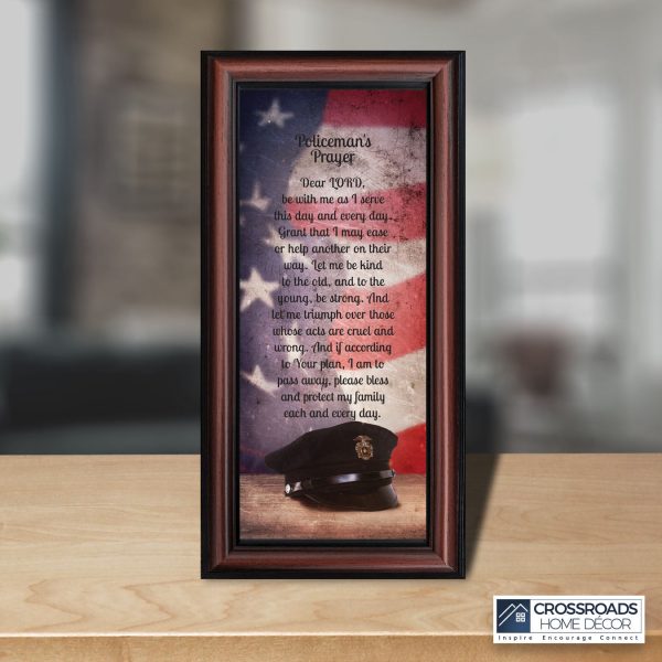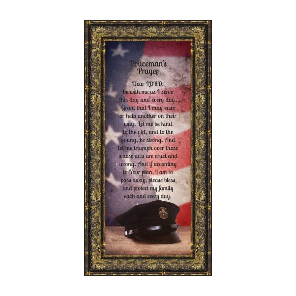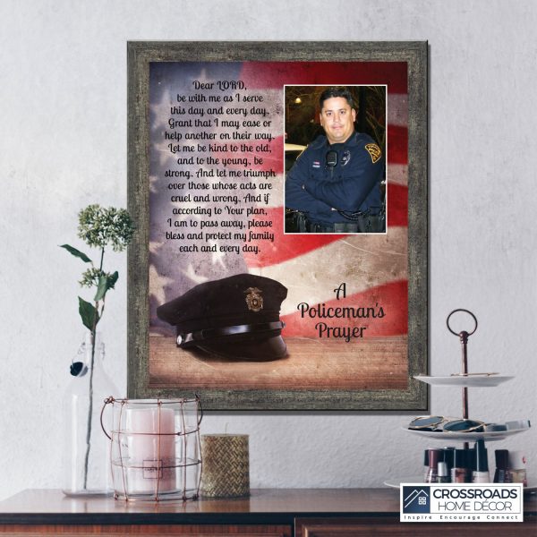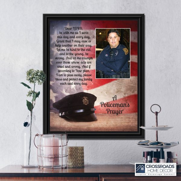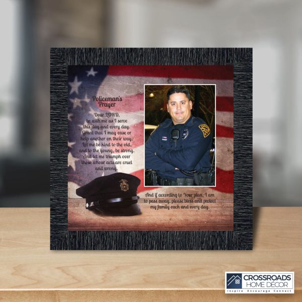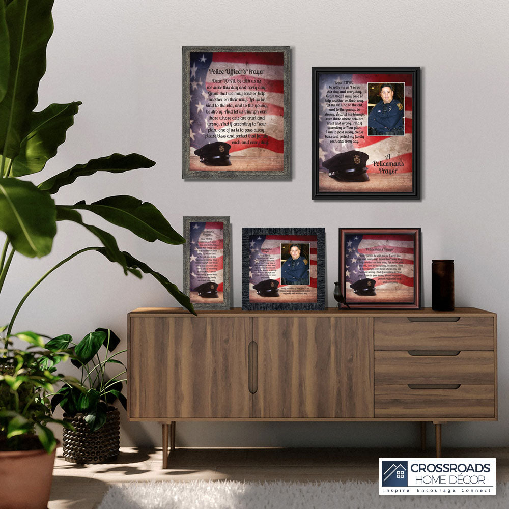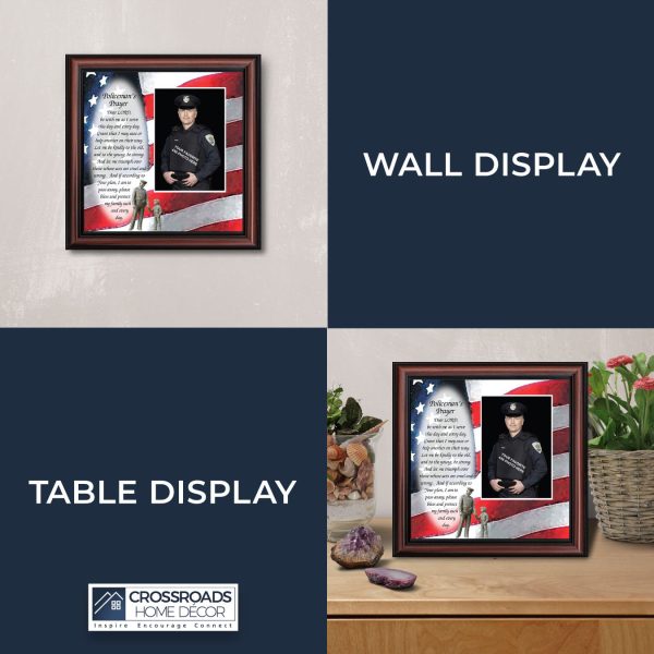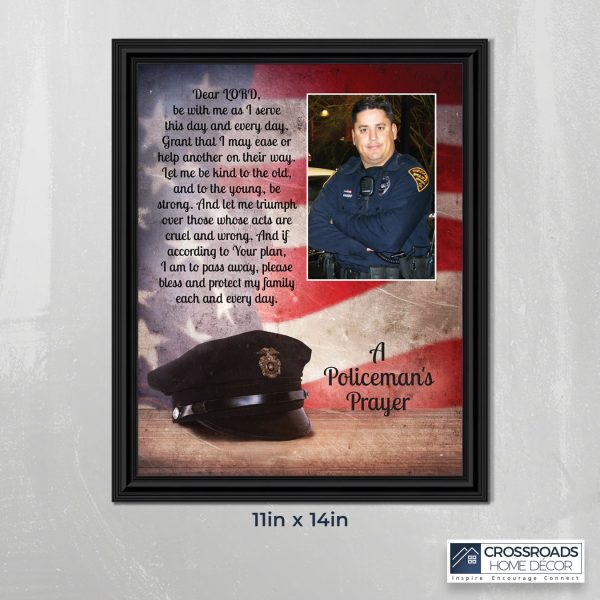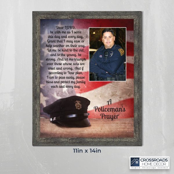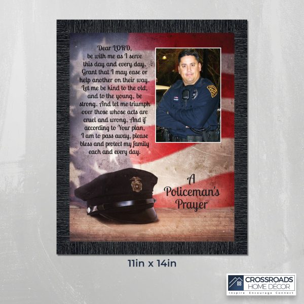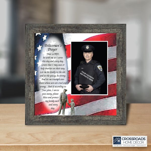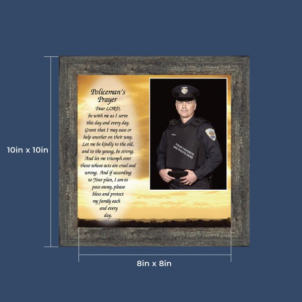 “THE POLICE OFFICER’S PRAYER” picture frame is a unique and meaningful gift for an officer in training or a gift for a police academy graduate. Use as part of your academy graduation party decorations and then enjoy for years to come to remember the occasion. Also, use the frame to celebrate the time-honored swearing-in and oath-taking ceremony.