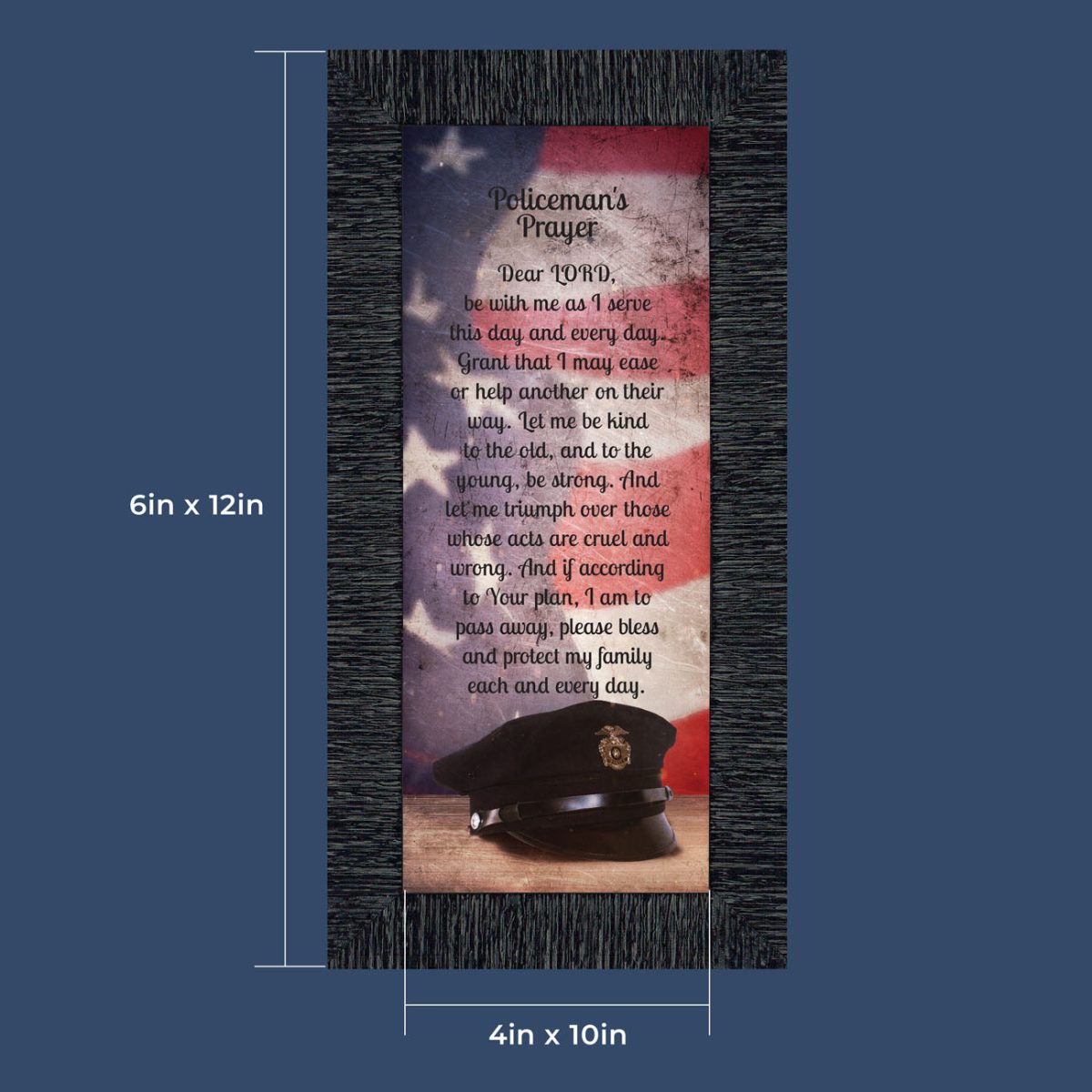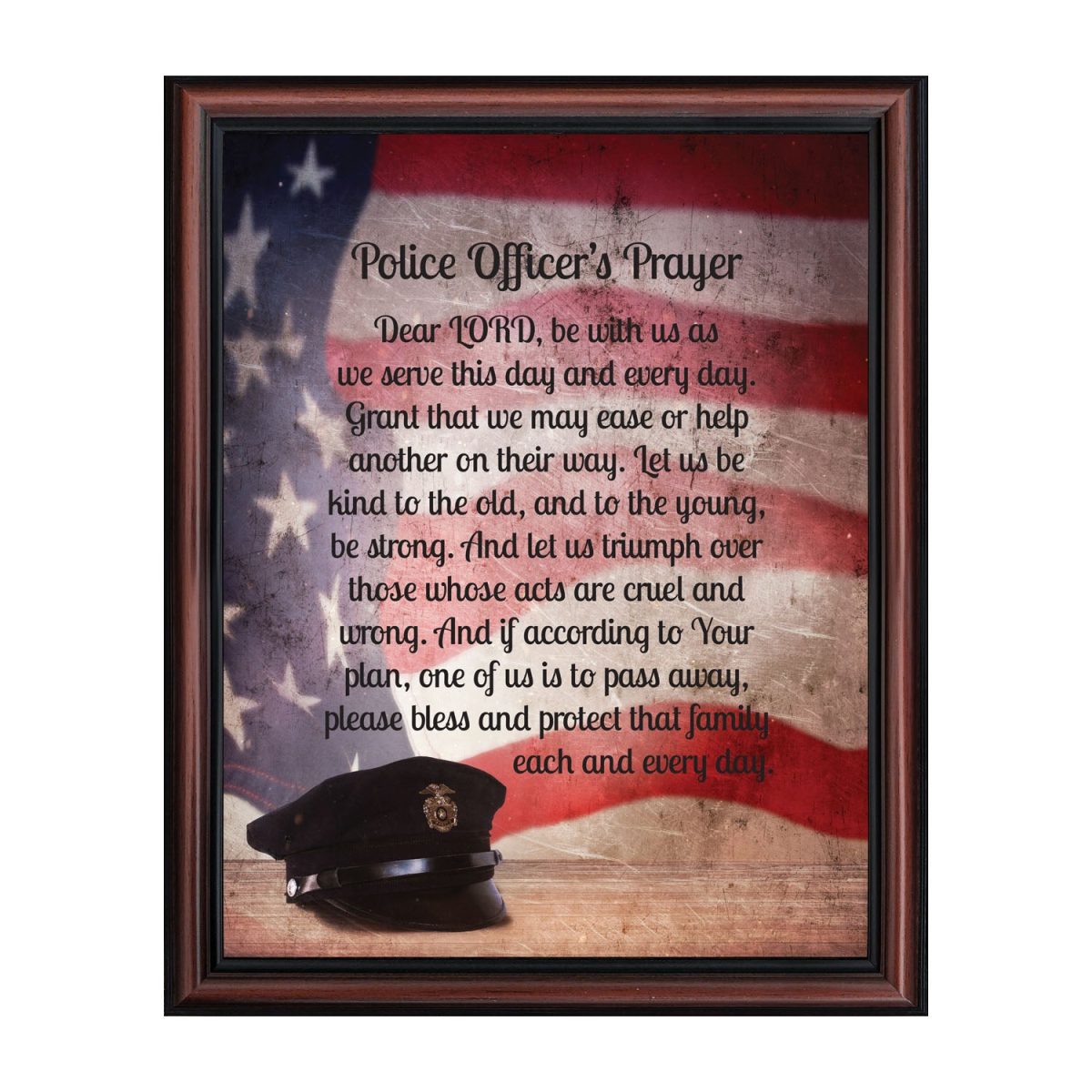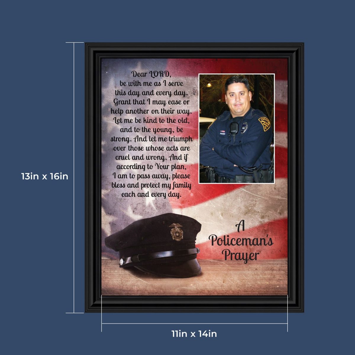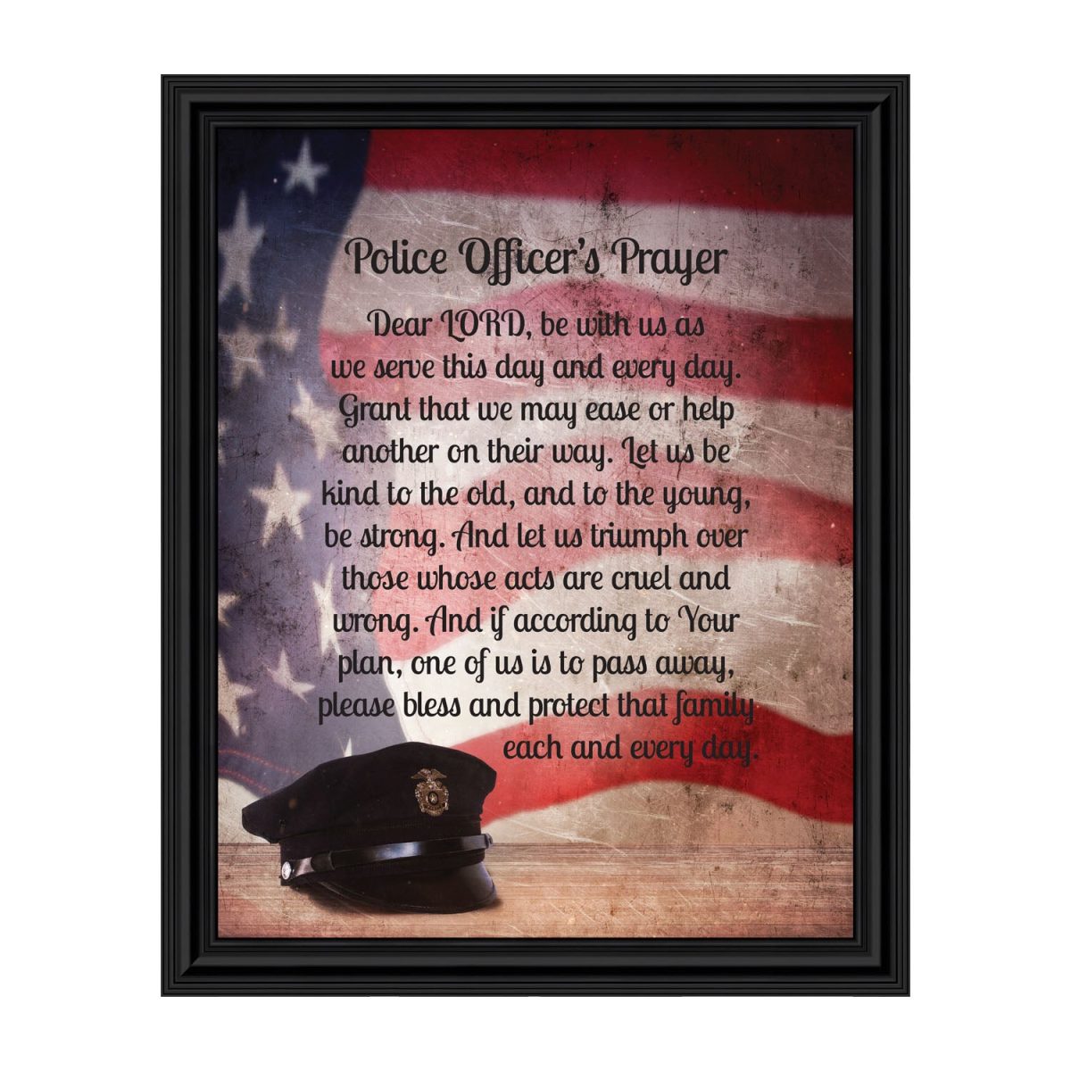 “THE POLICE OFFICER’S PRAYER” picture frame is a unique and meaningful gift for an officer in training or a gift for a police academy graduate. Use as part of your academy graduation party decorations and then enjoy for years to come to remember the occasion. Also, use the frame to celebrate the time-honored swearing-in and oath-taking ceremony.