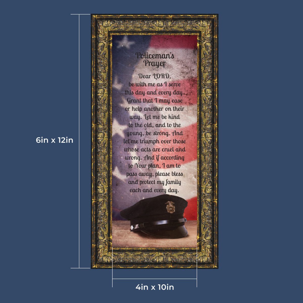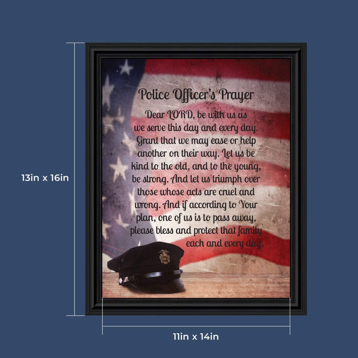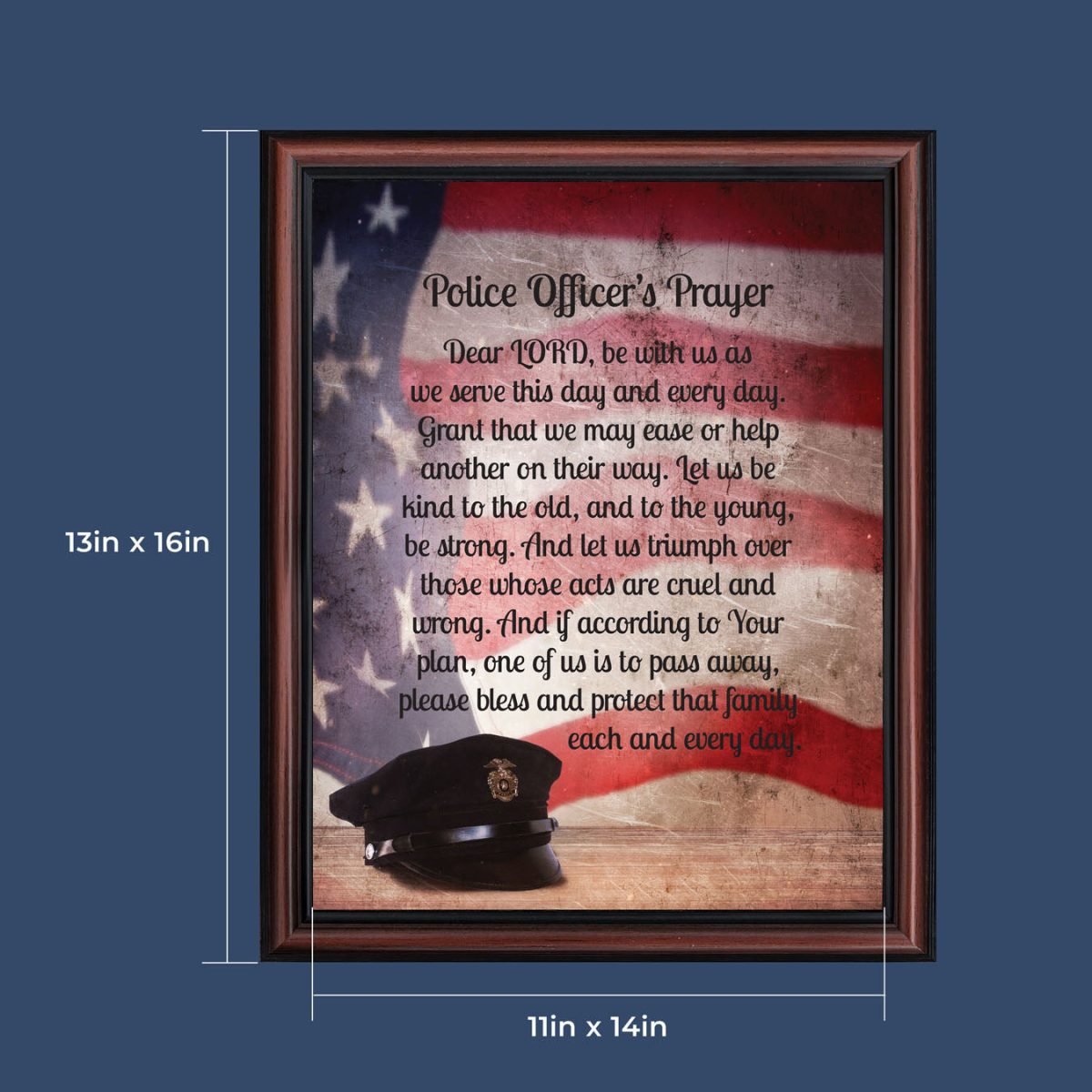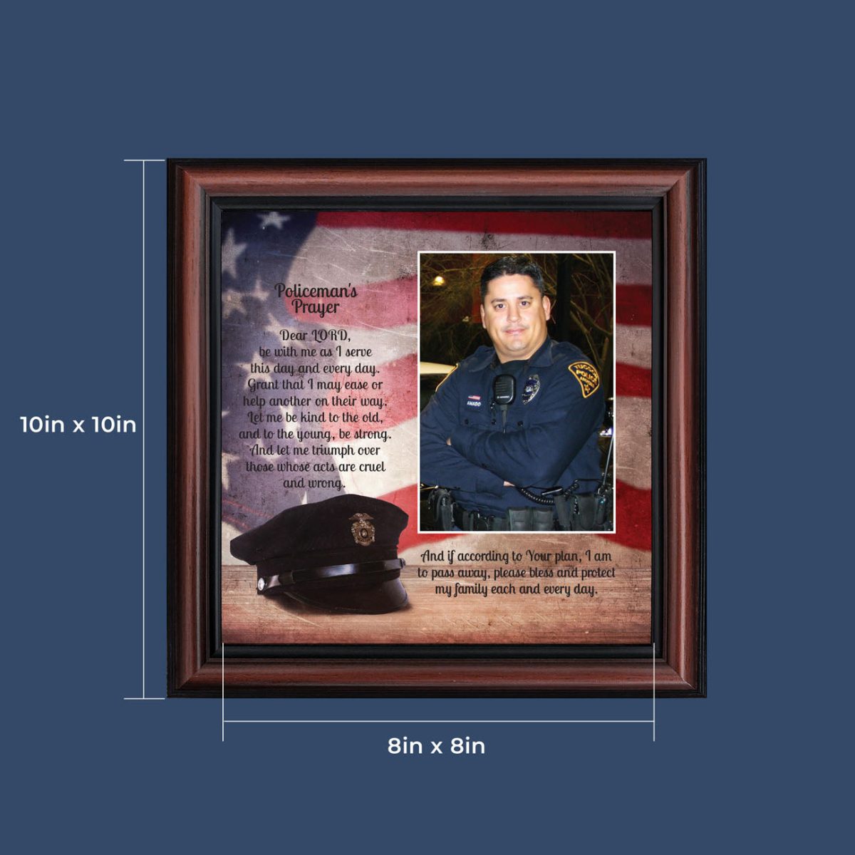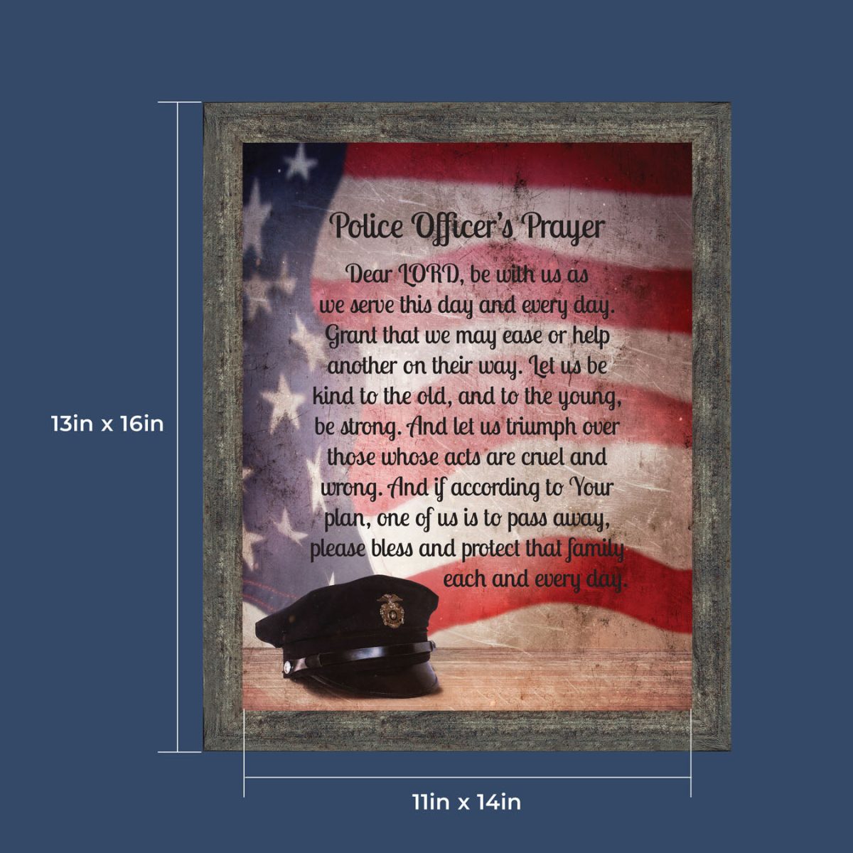 “THE POLICE OFFICER’S PRAYER” picture frame is a unique and meaningful gift for an officer in training or a gift for a police academy graduate. Use as part of your academy graduation party decorations and then enjoy for years to come to remember the occasion. Also, use the frame to celebrate the time-honored swearing-in and oath-taking ceremony.