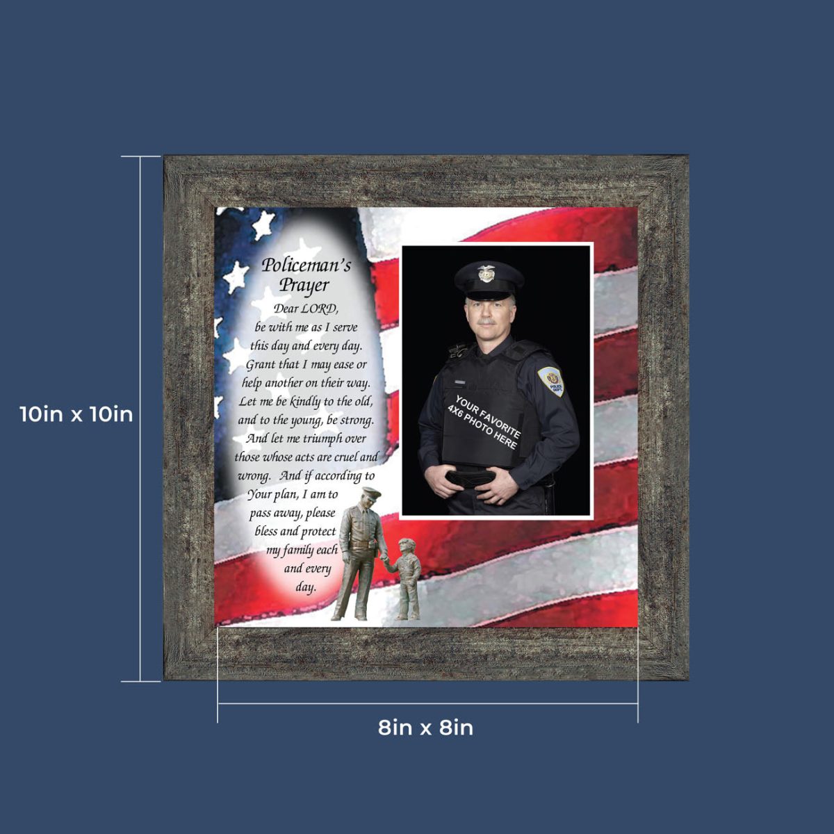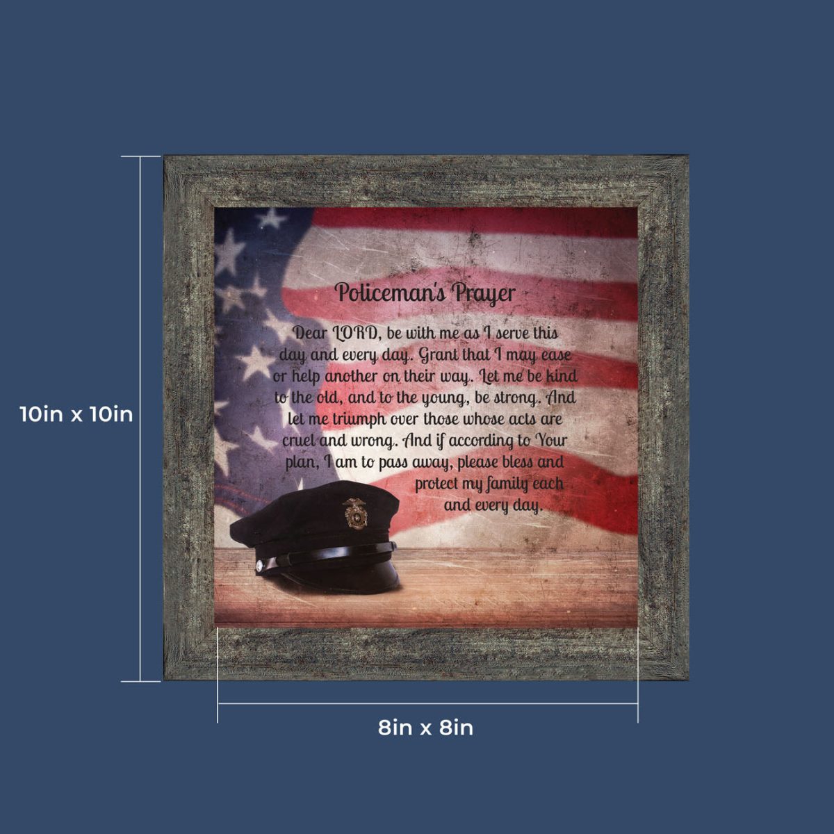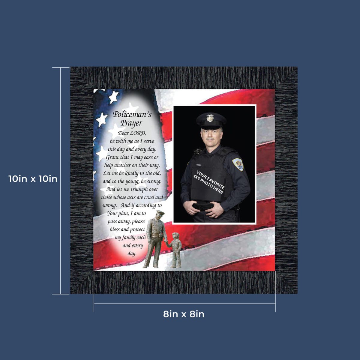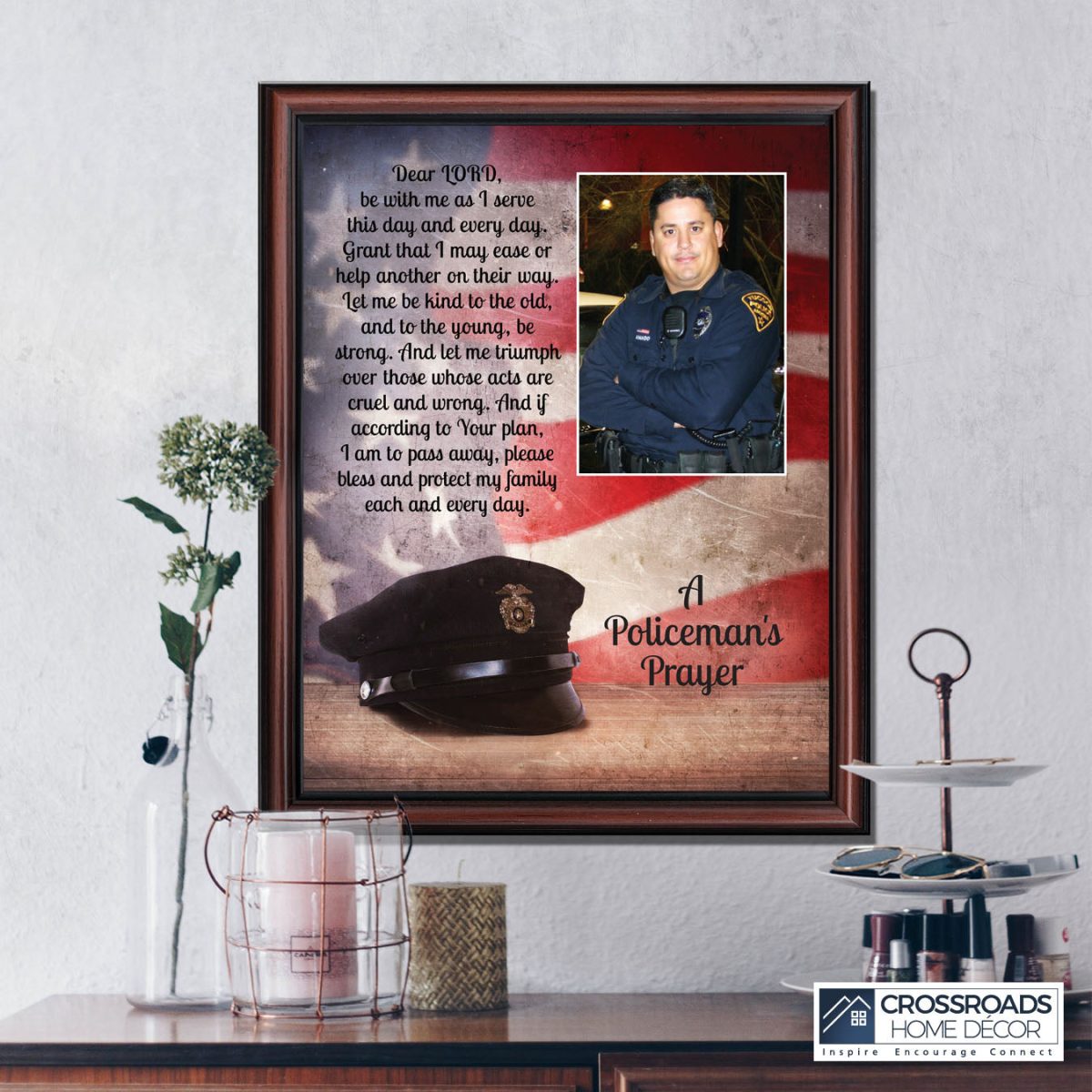 “THE POLICE OFFICER’S PRAYER” picture frame is a unique and meaningful gift for an officer in training or a gift for a police academy graduate. Use as part of your academy graduation party decorations and then enjoy for years to come to remember the occasion. Also, use the frame to celebrate the time-honored swearing-in and oath-taking ceremony.