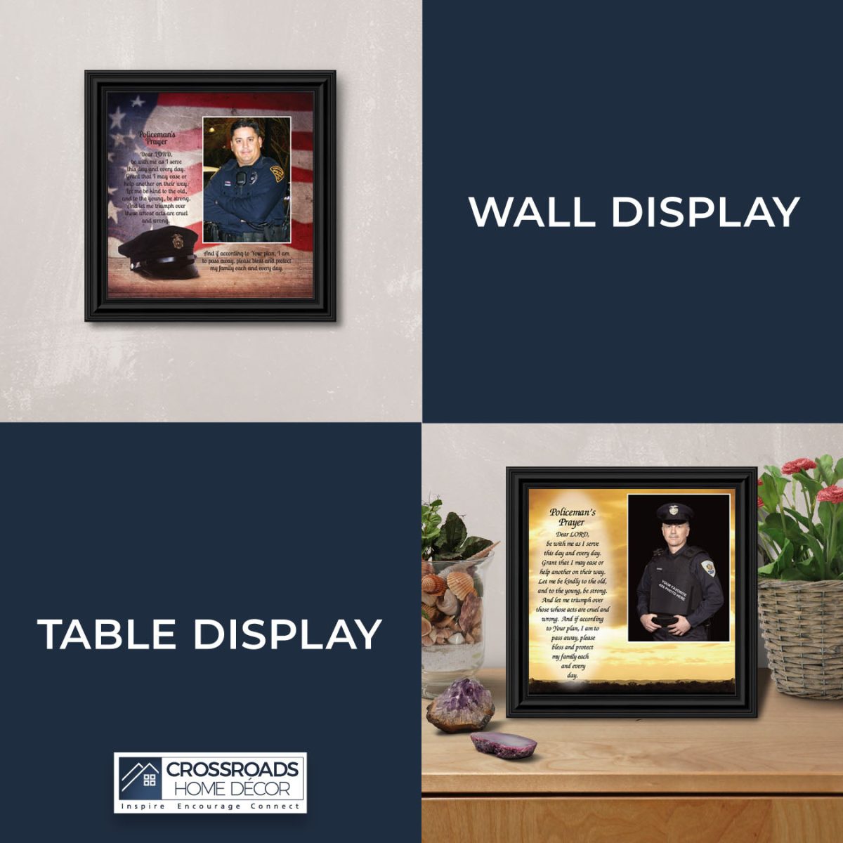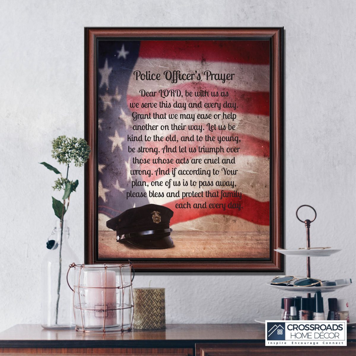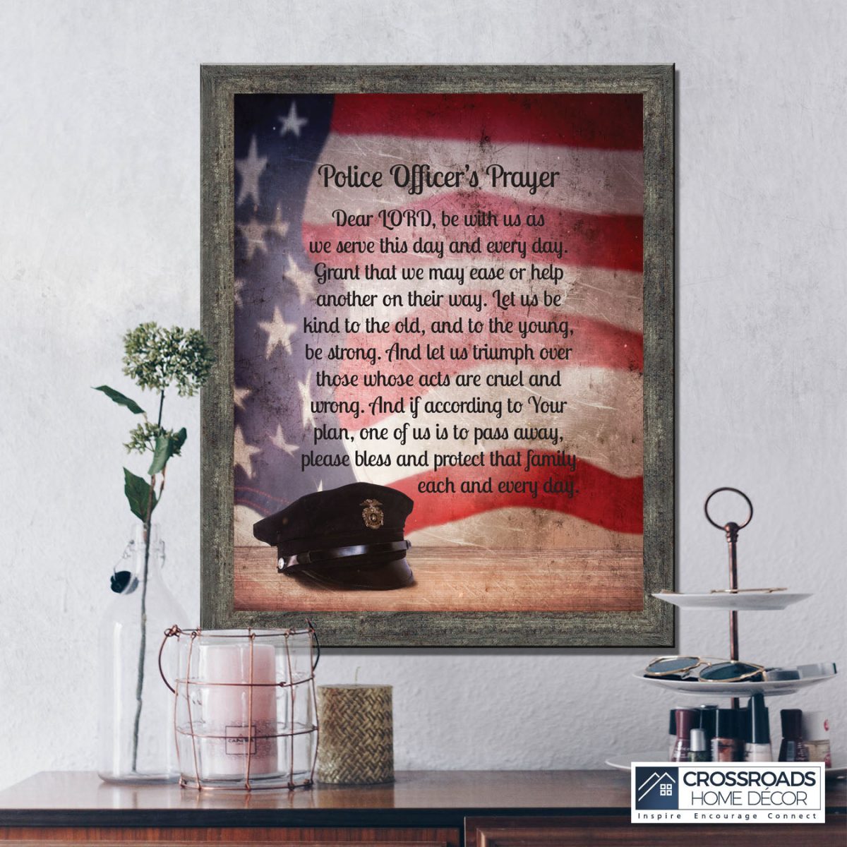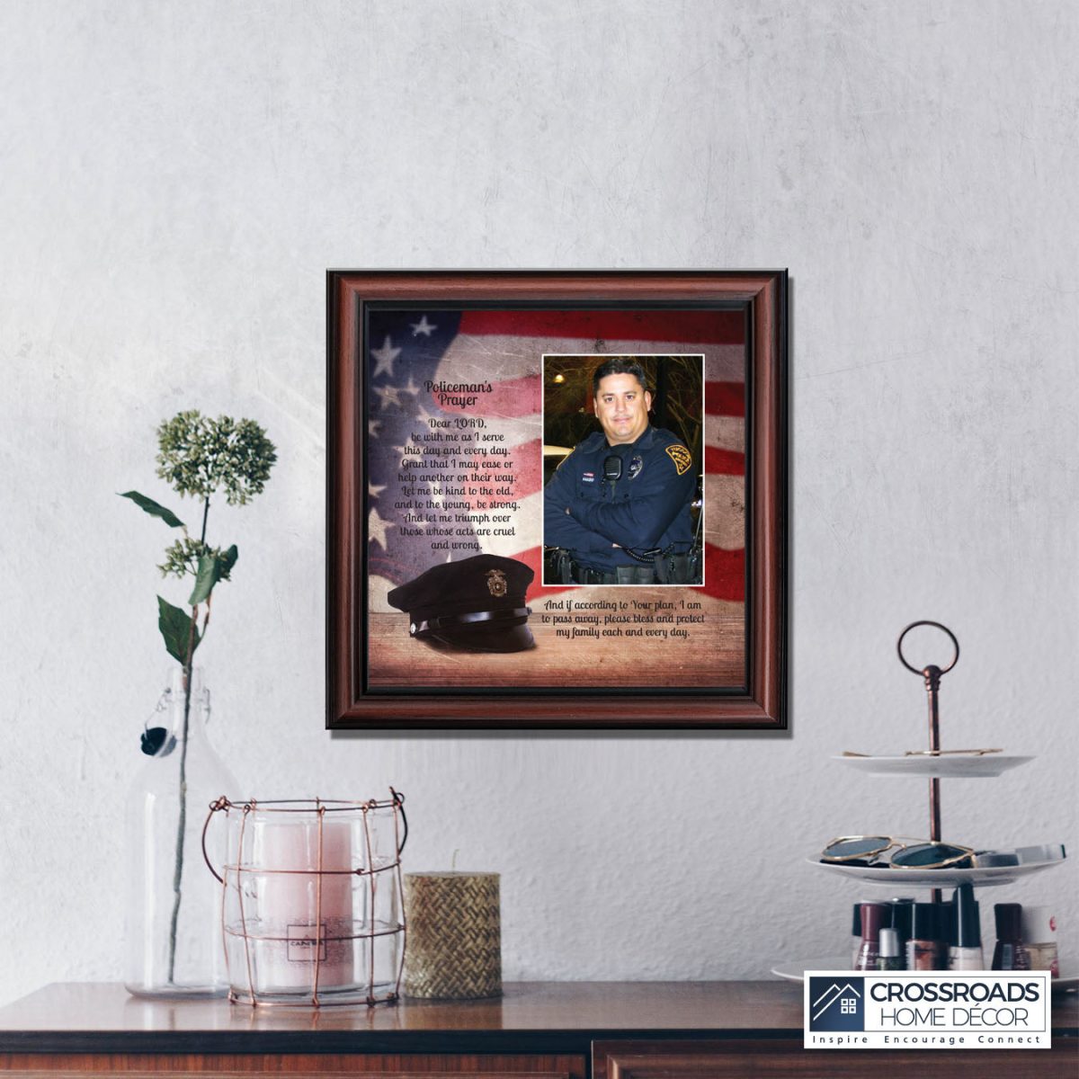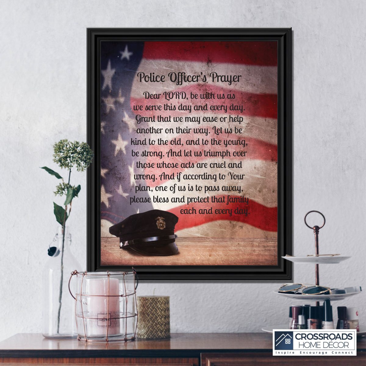 “THE POLICE OFFICER’S PRAYER” picture frame is a unique and meaningful gift for an officer in training or a gift for a police academy graduate. Use as part of your academy graduation party decorations and then enjoy for years to come to remember the occasion. Also, use the frame to celebrate the time-honored swearing-in and oath-taking ceremony.