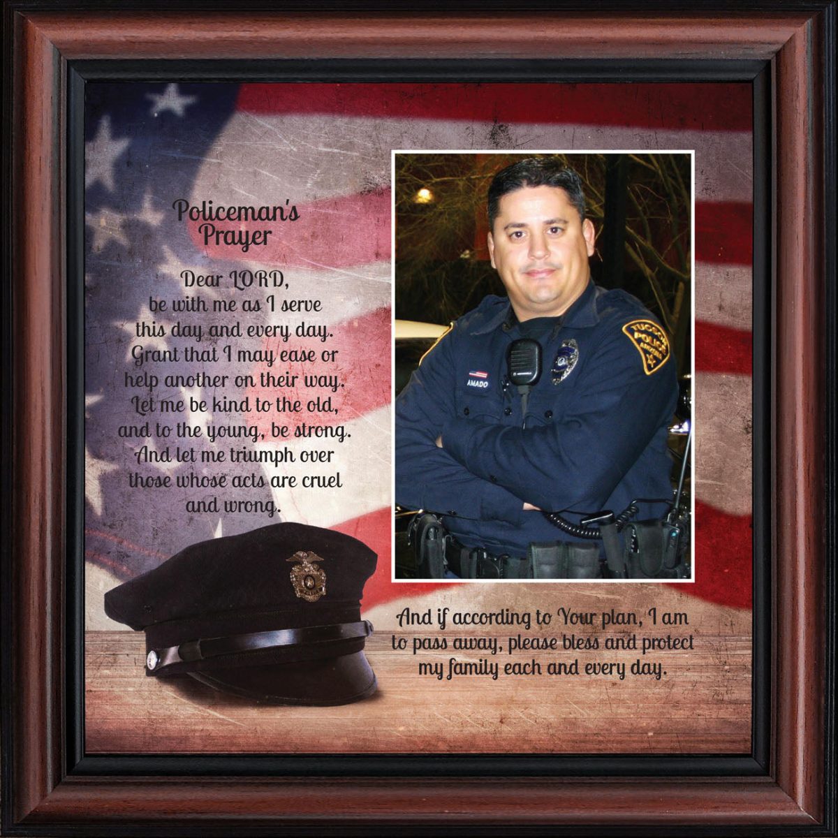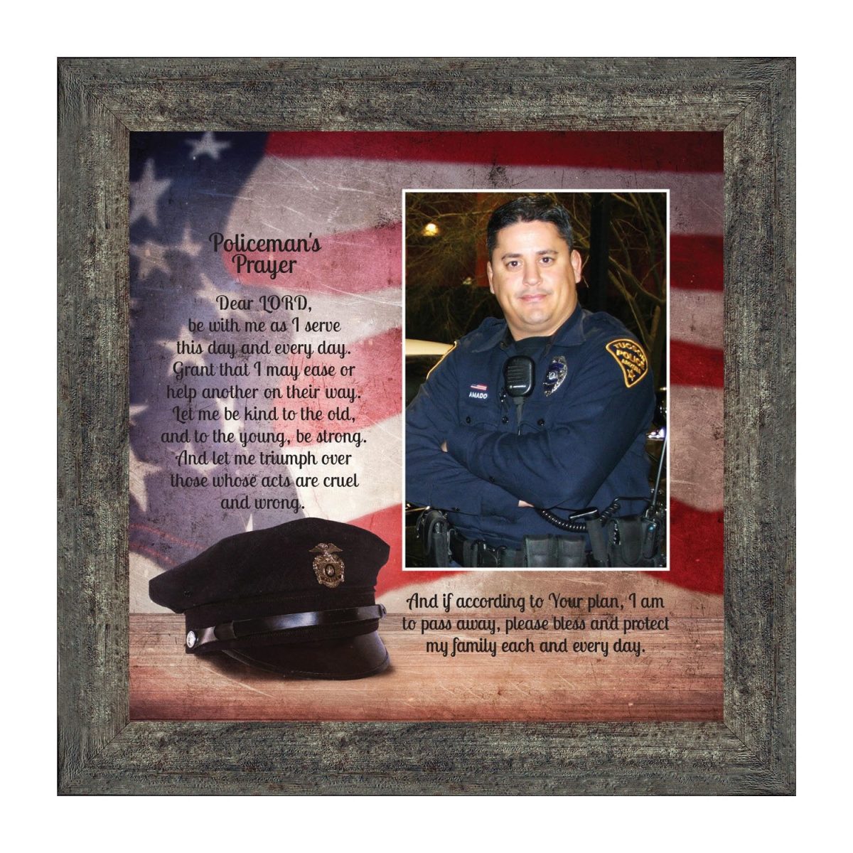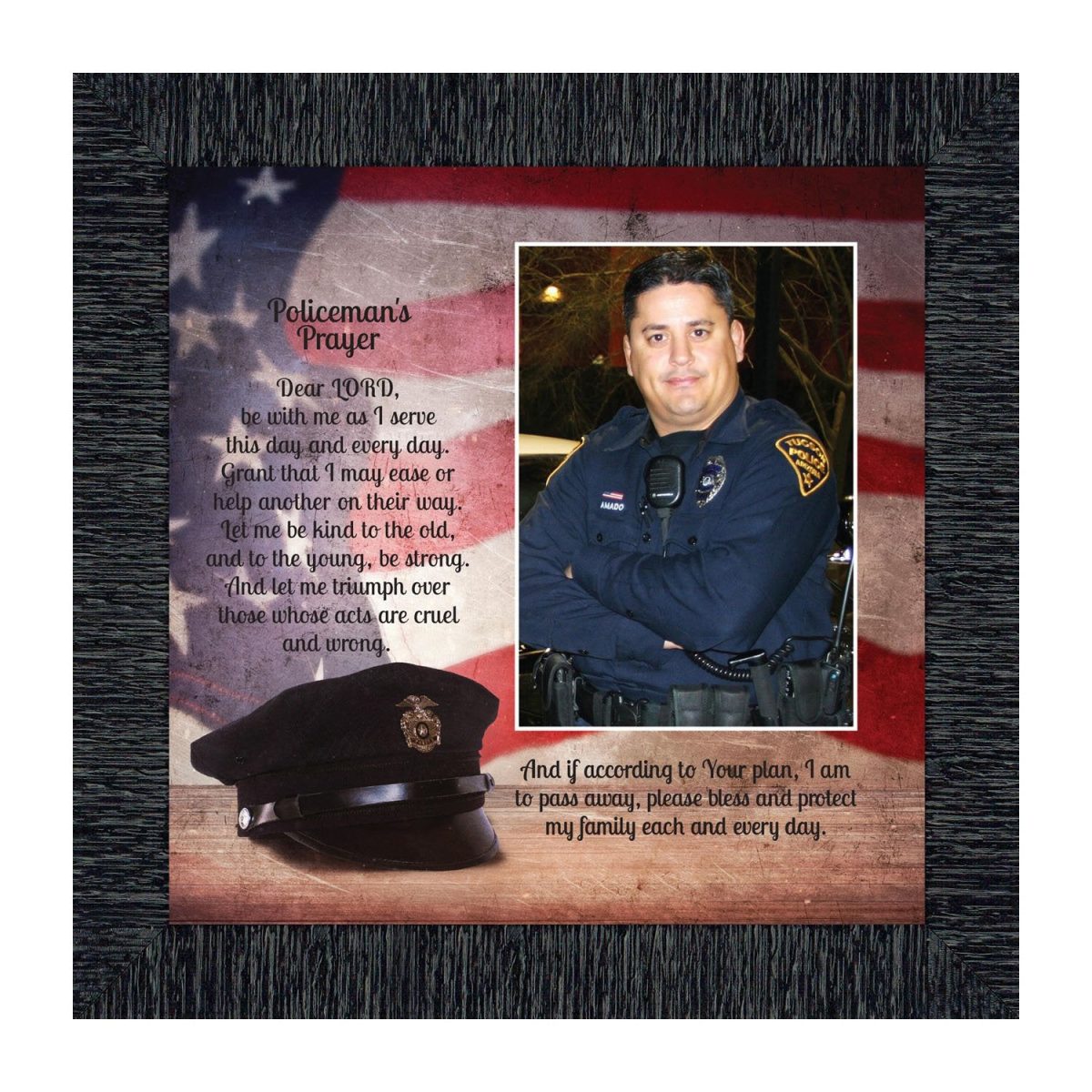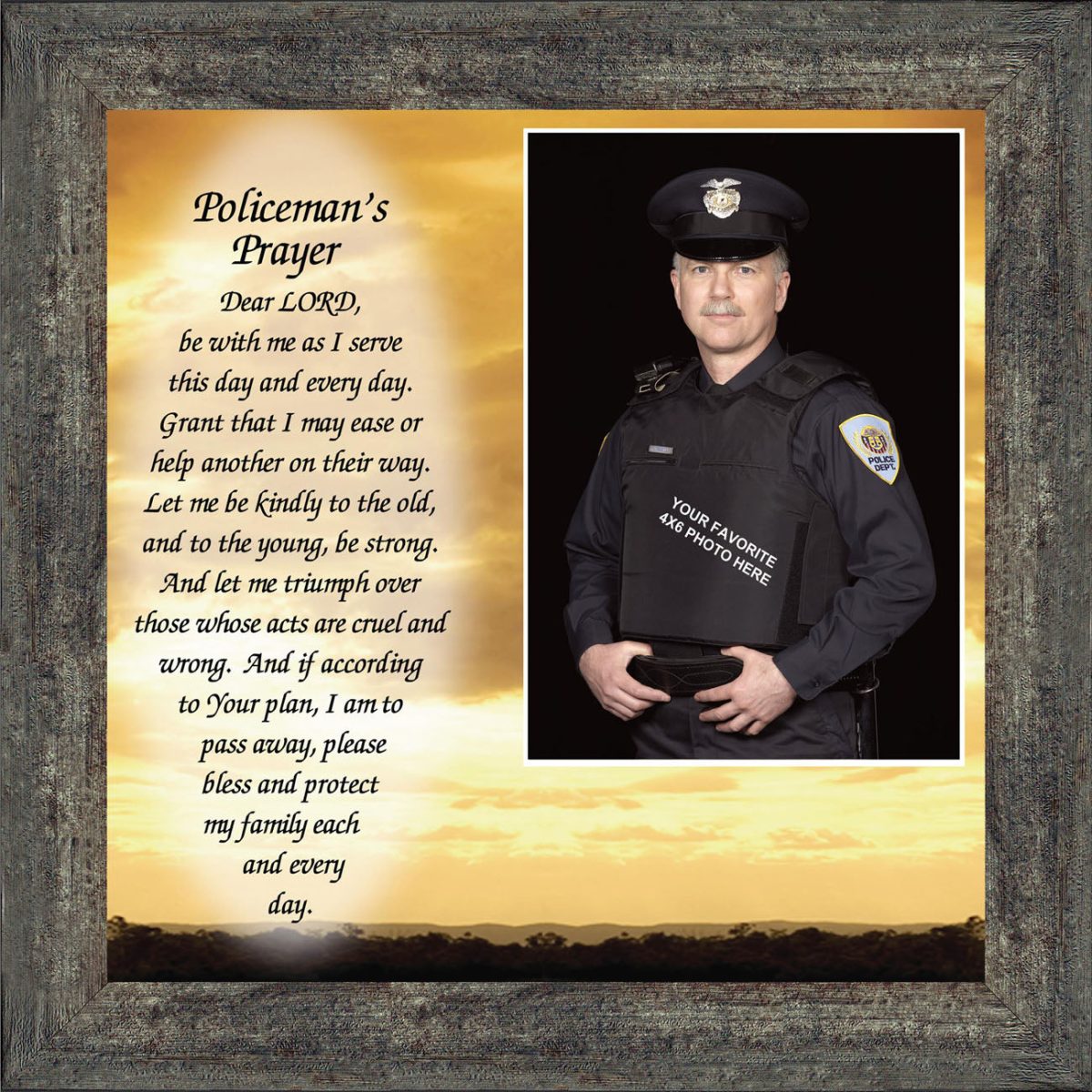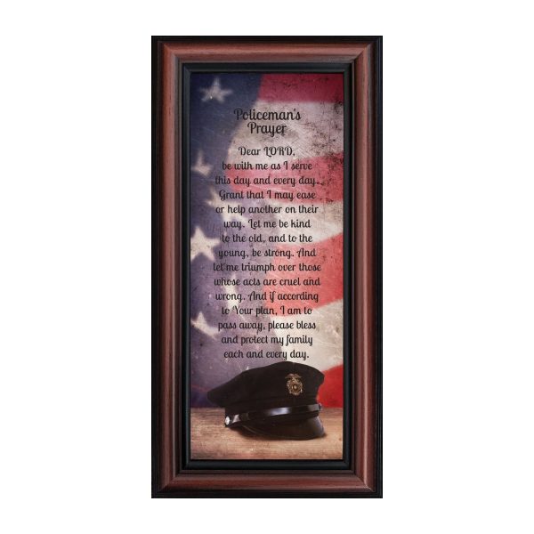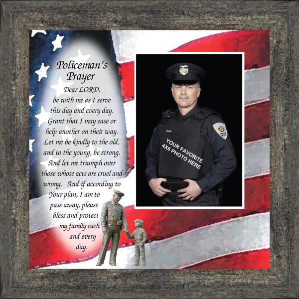 INSPIRATION AND HOPE can be found in these simple words that ask for the Lord’s blessing on the service the men and women in blue give to the community around them. These uplifting words will give purpose and renewed energy to any peacekeeper. Whether the picture frame is for a dispatcher, school resource officer, DARE officer, or patrol officer, this frame will be well received.