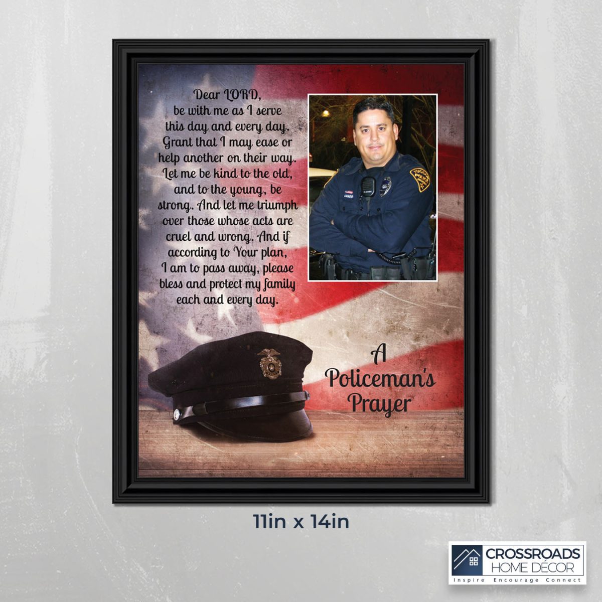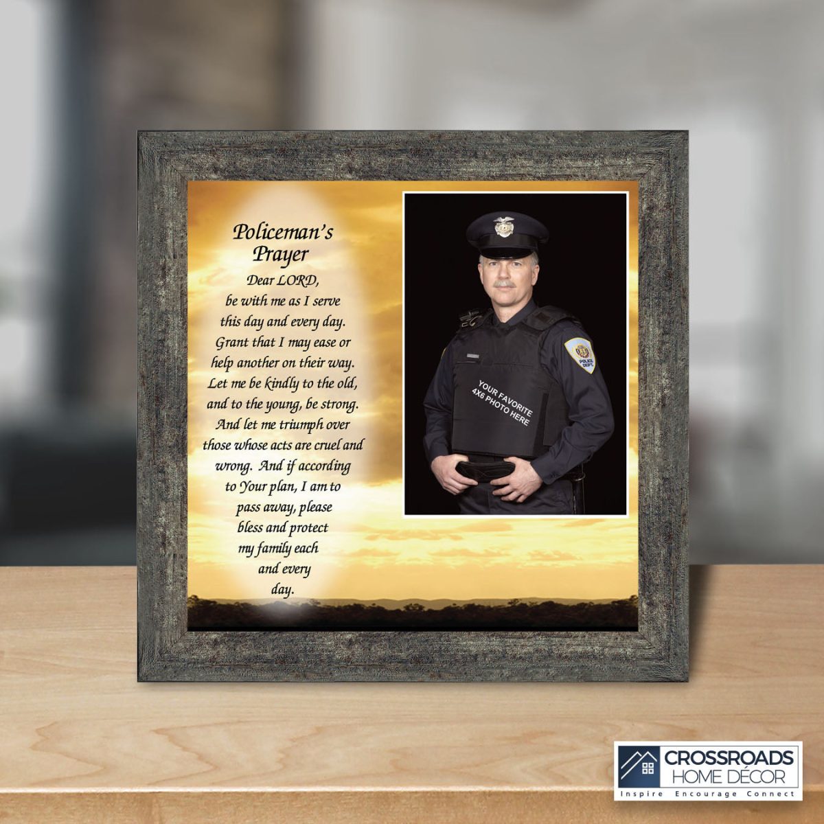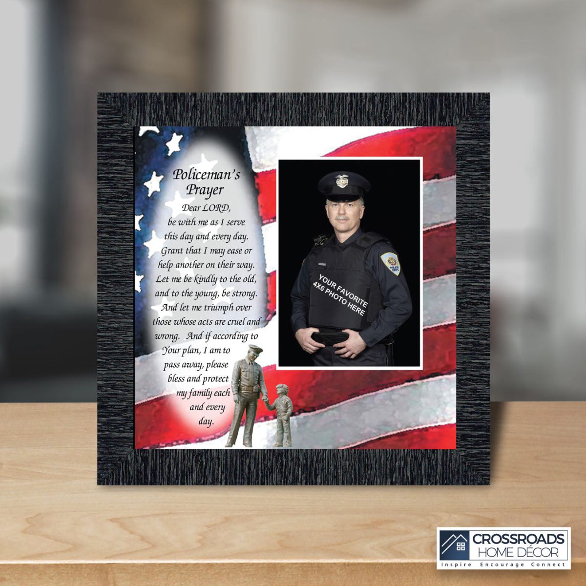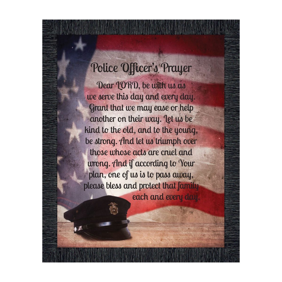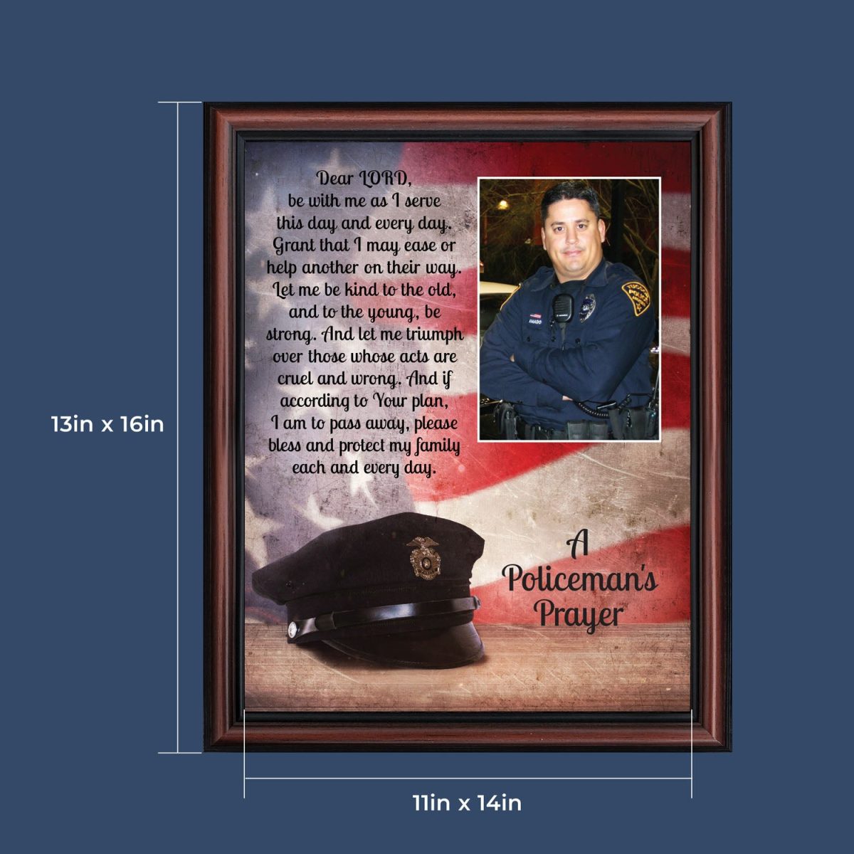 INSPIRATION AND HOPE can be found in these simple words that ask for the Lord’s blessing on the service the men and women in blue give to the community around them. These uplifting words will give purpose and renewed energy to any peacekeeper. Whether the picture frame is for a dispatcher, school resource officer, DARE officer, or patrol officer, this frame will be well received.