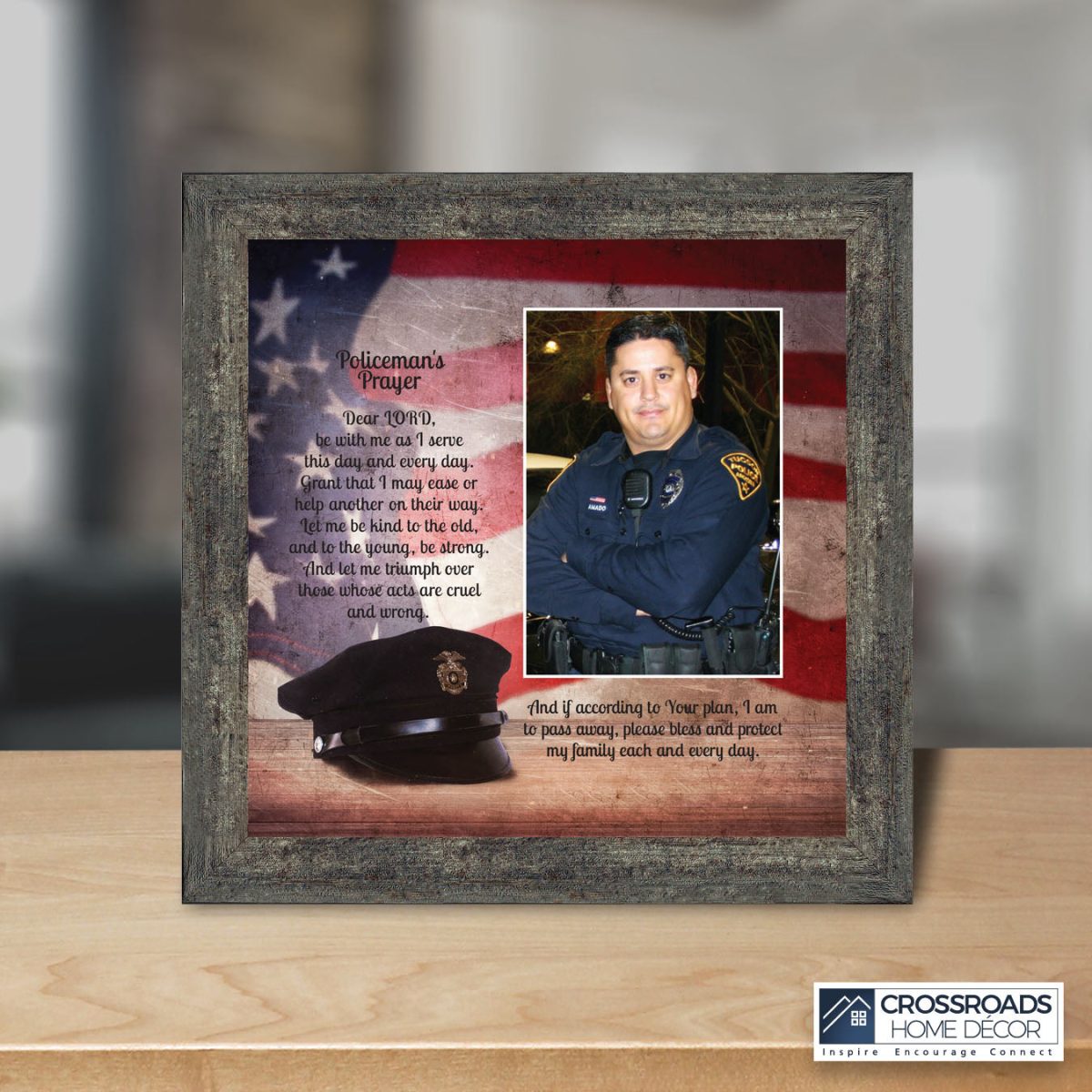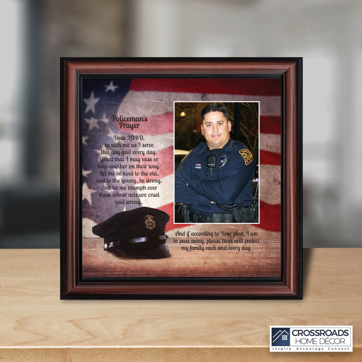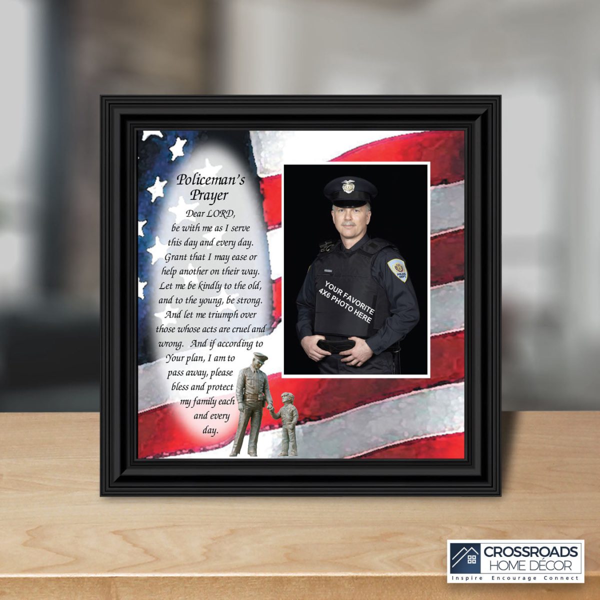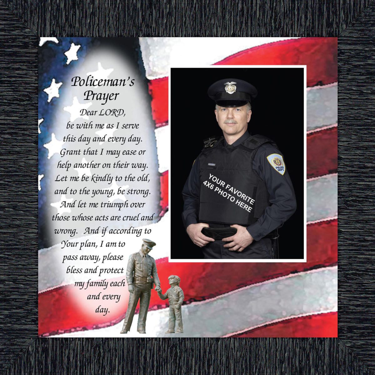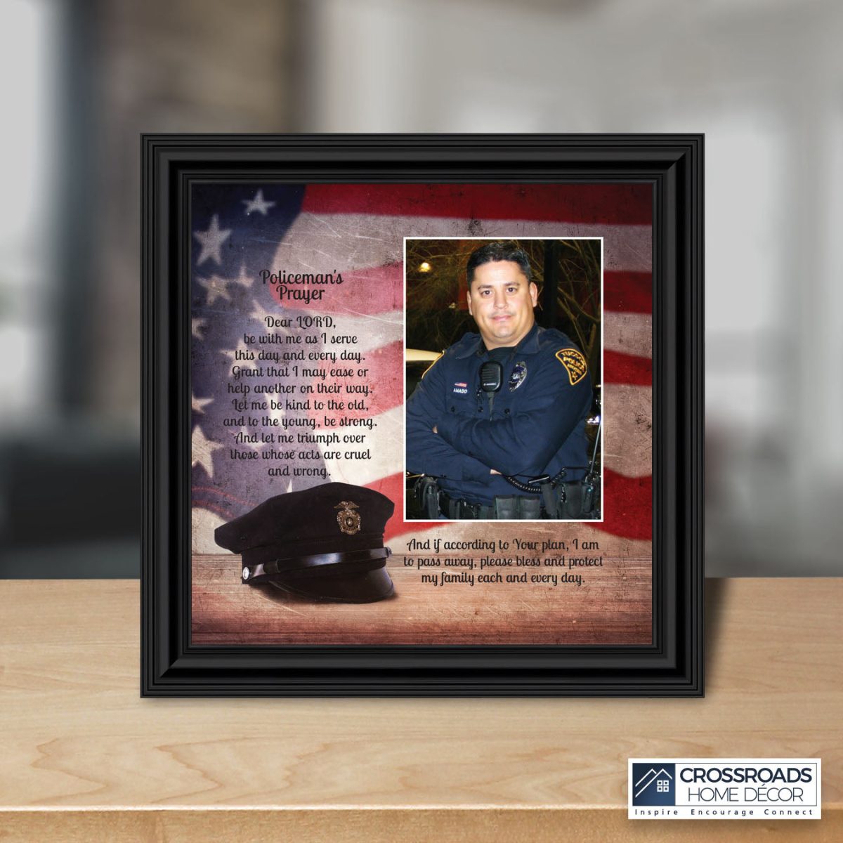 INSPIRATION AND HOPE can be found in these simple words that ask for the Lord’s blessing on the service the men and women in blue give to the community around them. These uplifting words will give purpose and renewed energy to any peacekeeper. Whether the picture frame is for a dispatcher, school resource officer, DARE officer, or patrol officer, this frame will be well received.