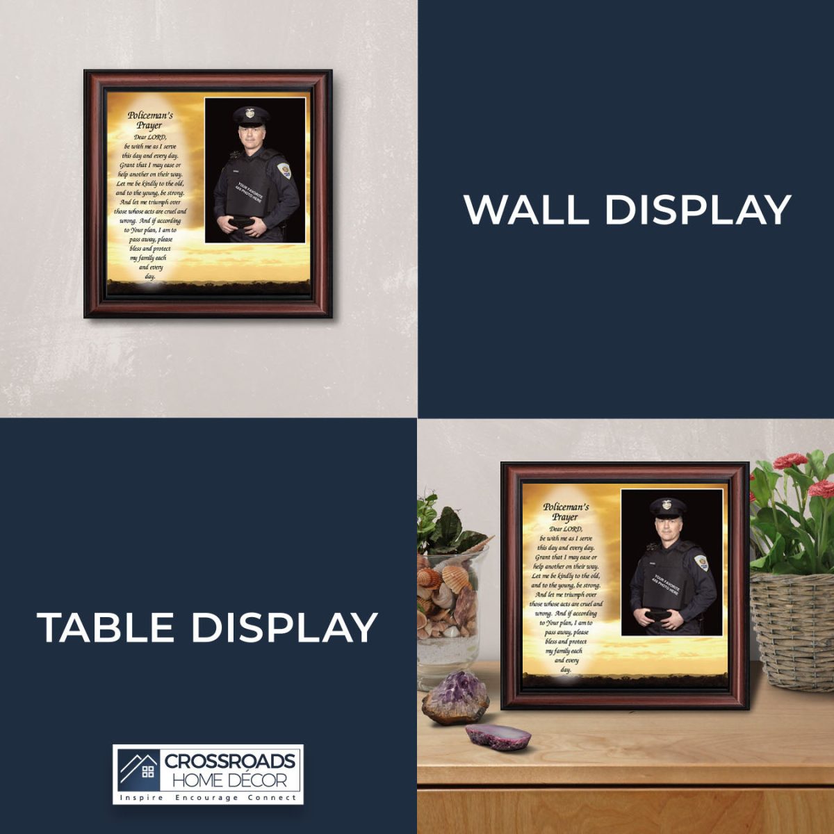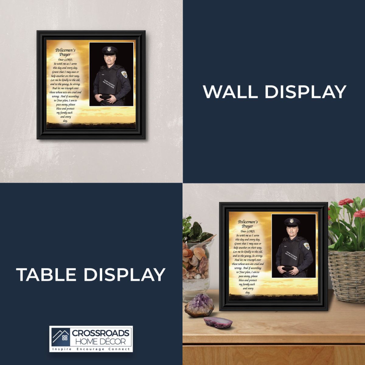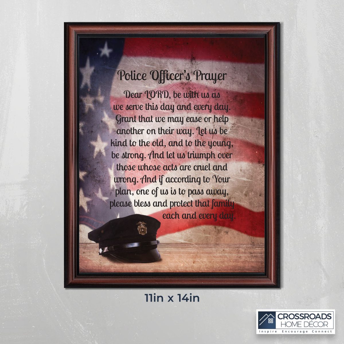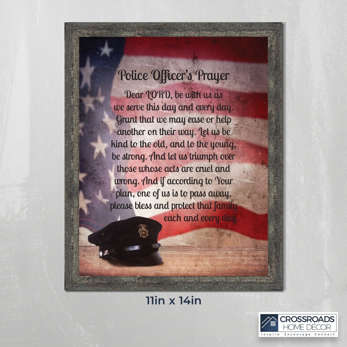 INSPIRATION AND HOPE can be found in these simple words that ask for the Lord’s blessing on the service the men and women in blue give to the community around them. These uplifting words will give purpose and renewed energy to any peacekeeper. Whether the picture frame is for a dispatcher, school resource officer, DARE officer, or patrol officer, this frame will be well received.