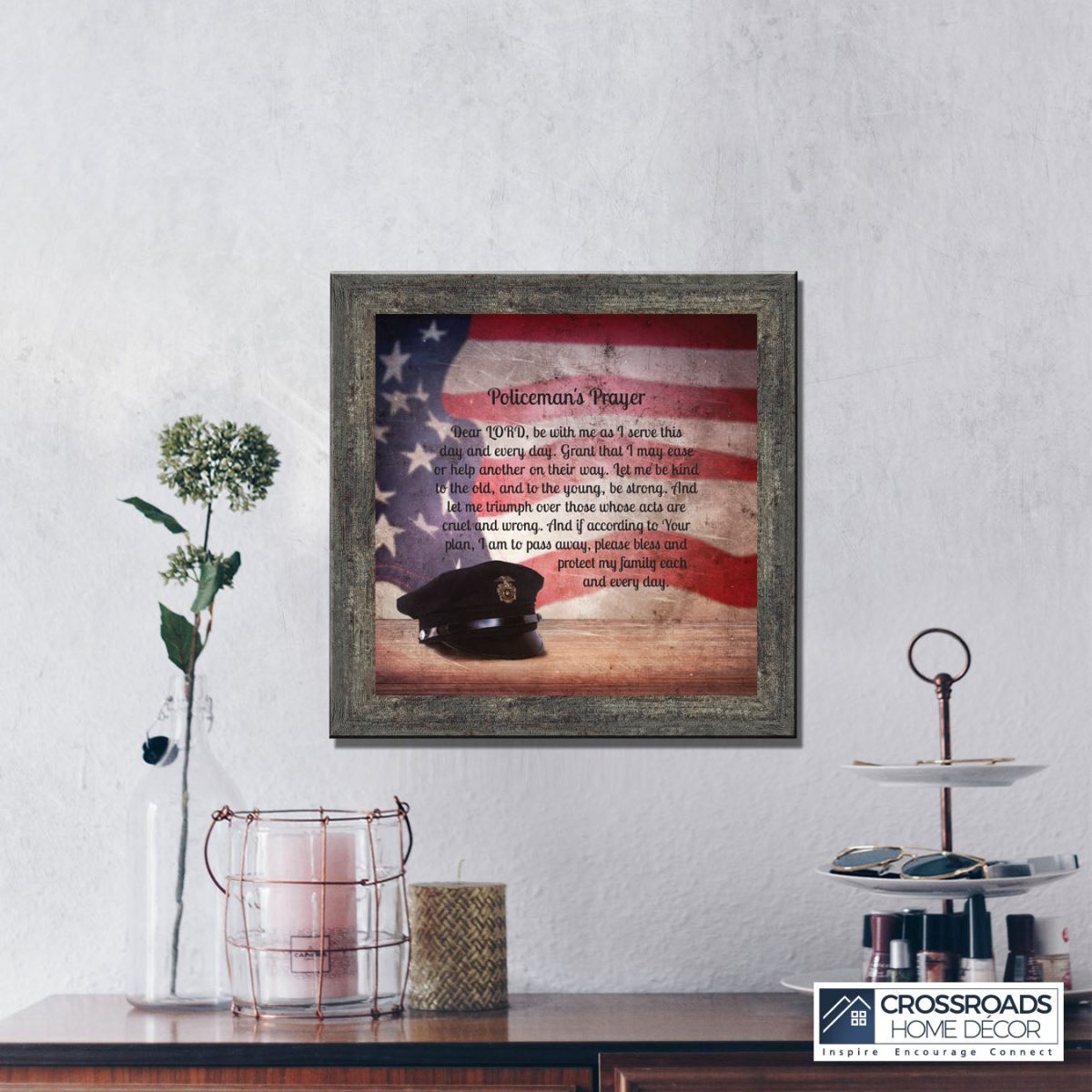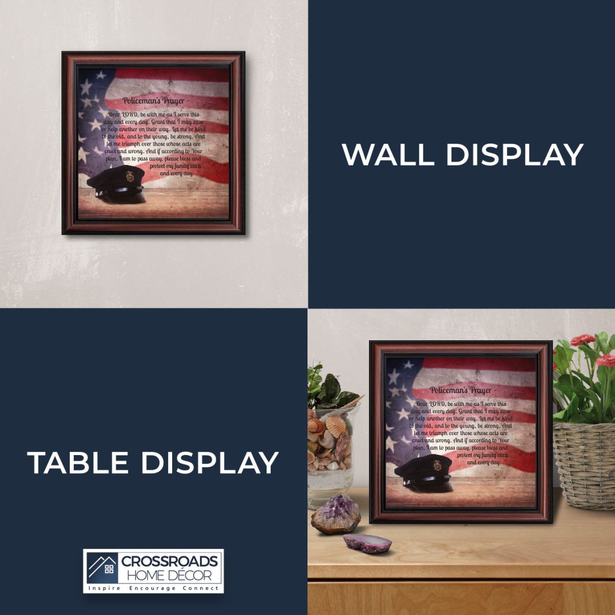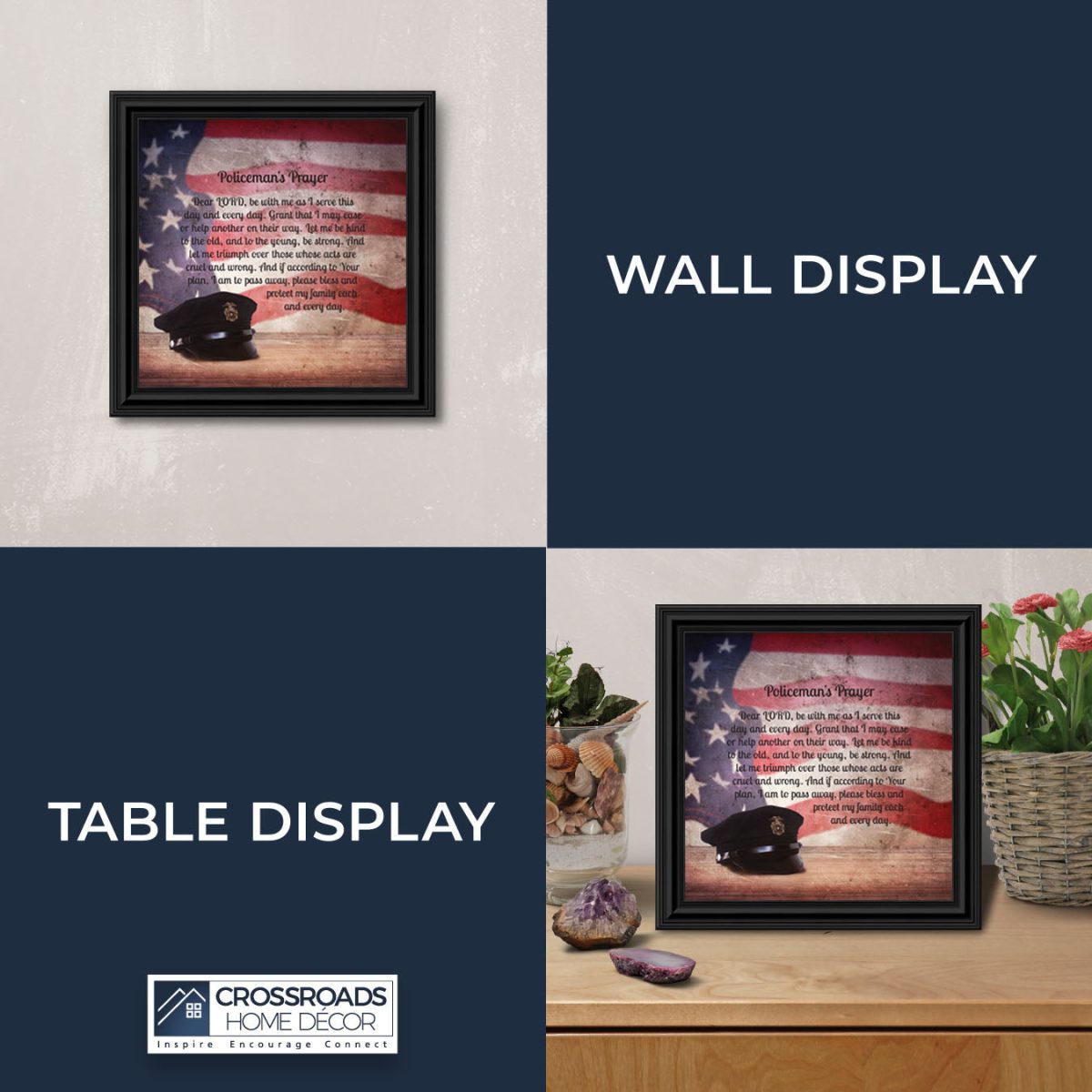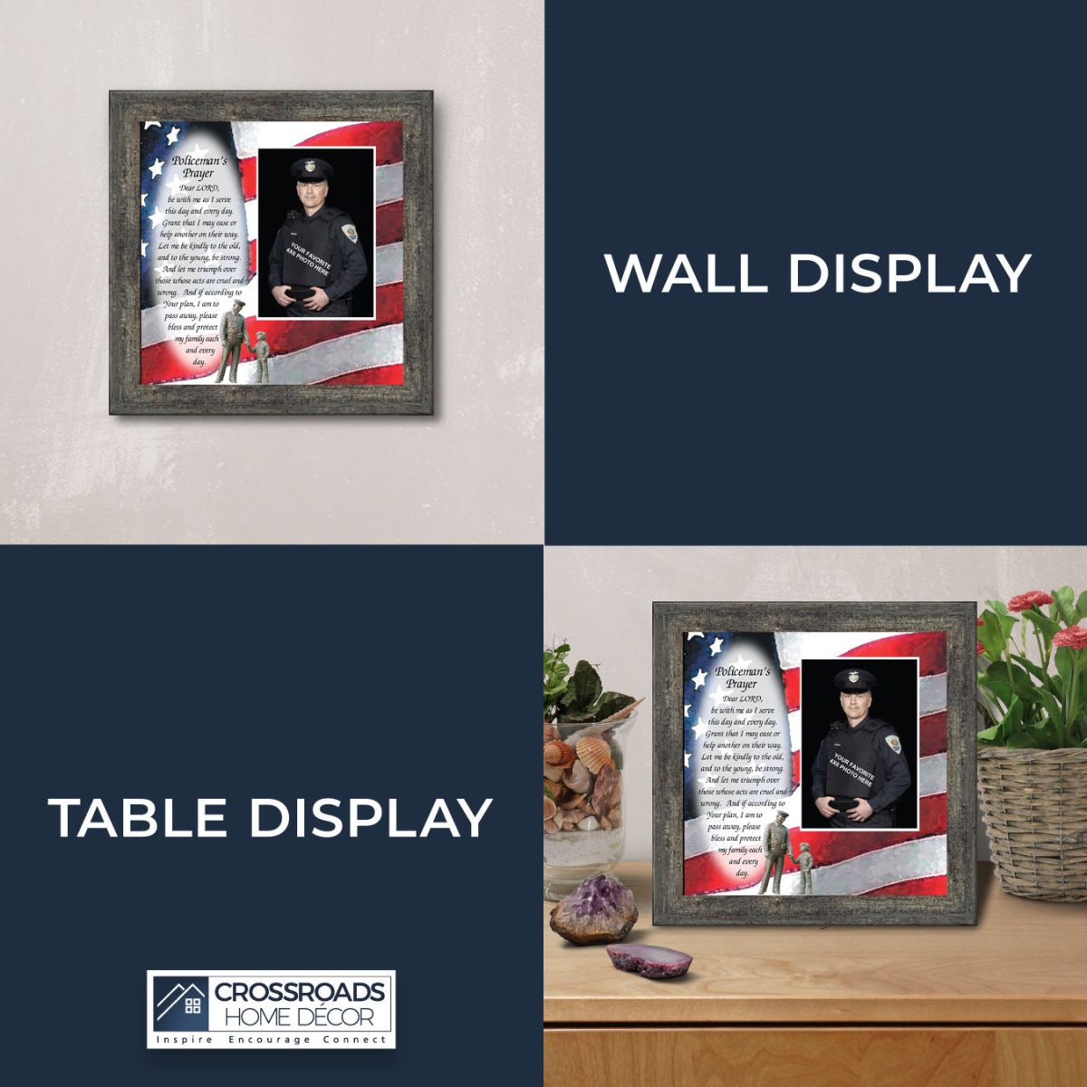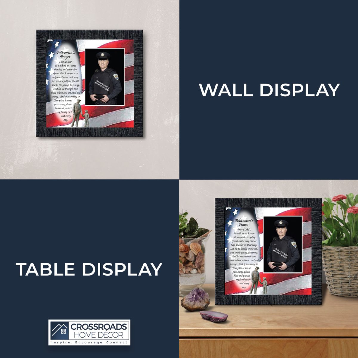 INSPIRATION AND HOPE can be found in these simple words that ask for the Lord’s blessing on the service the men and women in blue give to the community around them. These uplifting words will give purpose and renewed energy to any peacekeeper. Whether the picture frame is for a dispatcher, school resource officer, DARE officer, or patrol officer, this frame will be well received.