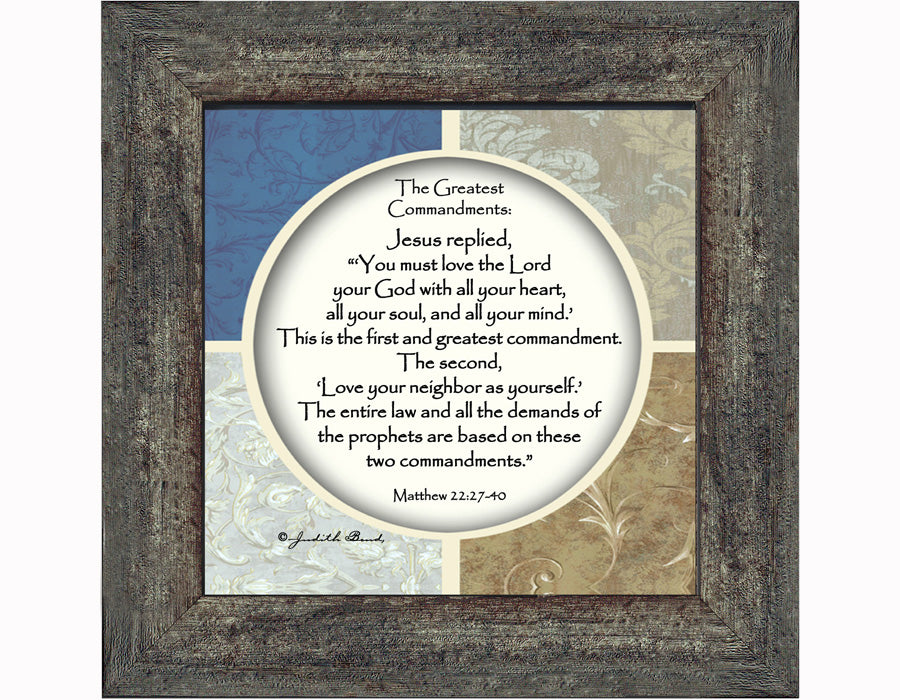 - Picture framed scripture verses from Matthew 22:27-40 about love for God and love for others