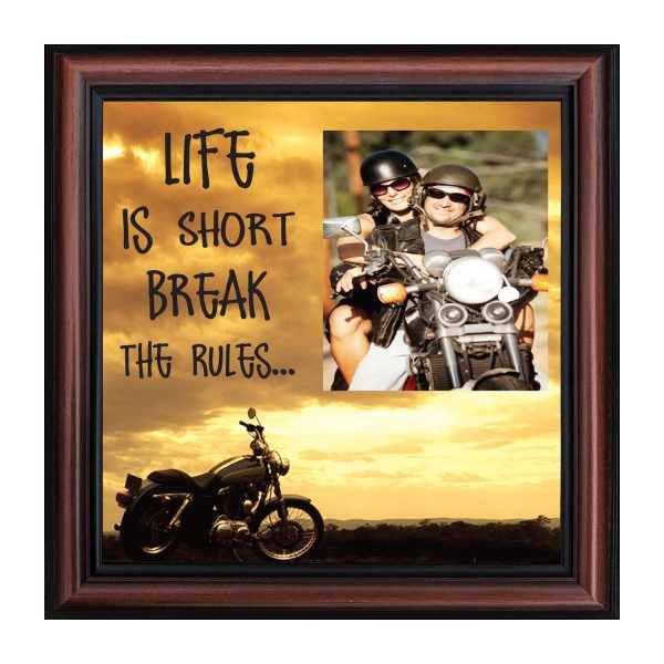 Classic Motorcycle “Life is Short” Sunset with Personalized Picture Frame, 10X10 9762