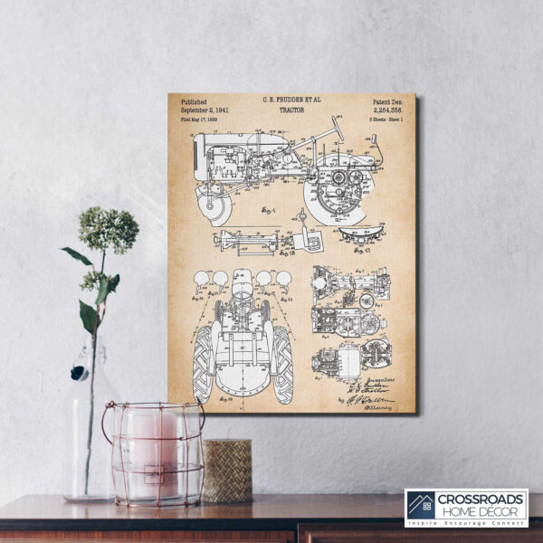 Crossroads Home Décor, Allis Chalmers Gifts, Tractor Gifts for Men, Allis Chalmers Tractor Patent Canvas Print , Ready To Hang for Living Room Home Wall Decor