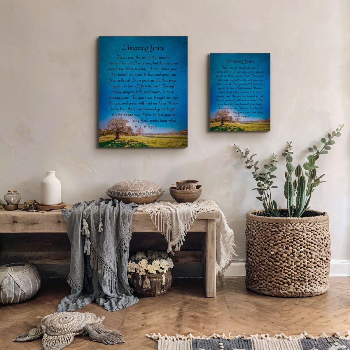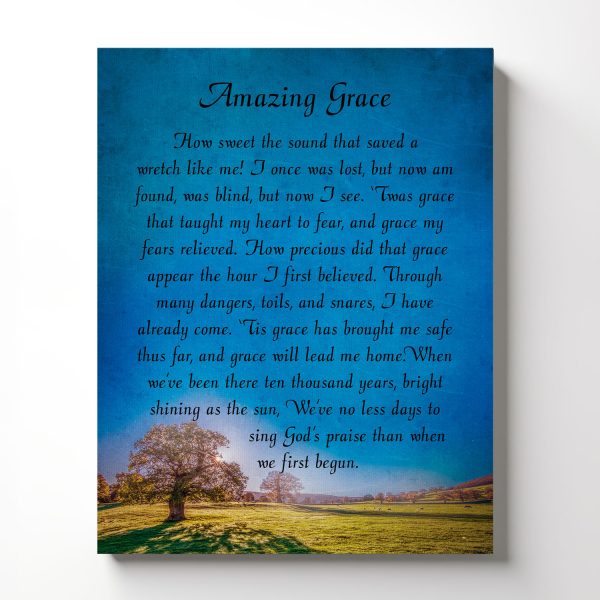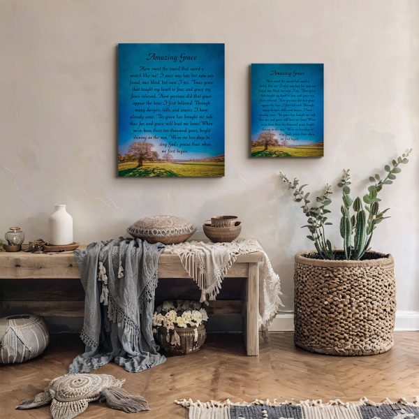 Adorn your living space with the Amazing Grace Canvas Print, a centerpiece of religious wall decor that inspires and uplifts. This piece, exemplifying amazing grace wall decor, brings a profound message into your home, perfect for enhancing any Chirstian wall decor for living room.