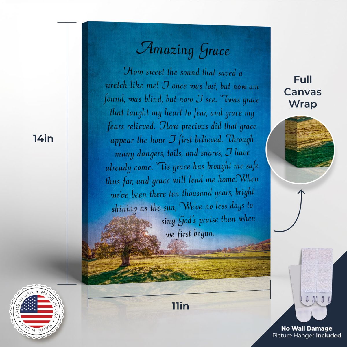Amazing Grace Wall Decor, Amazing Grace Canvas Print, Religious Wall Decor, Ready To Hang for Living Room Decor, C2111-11×14