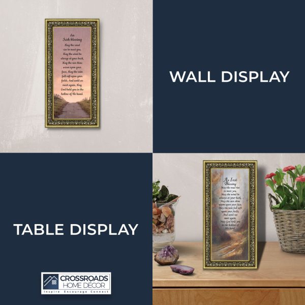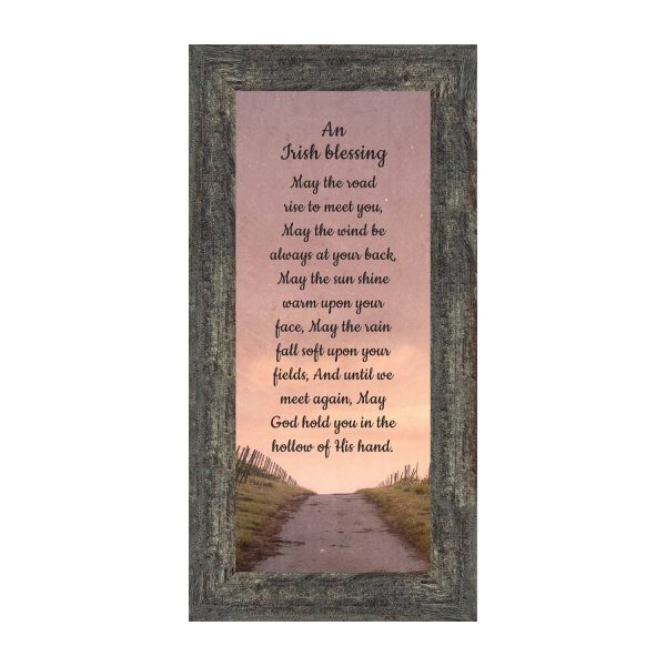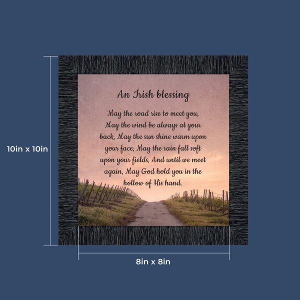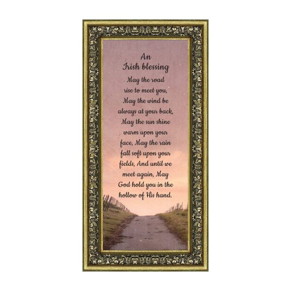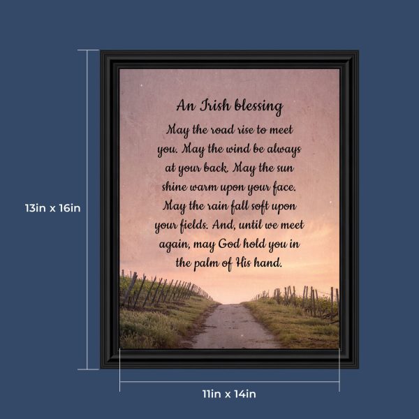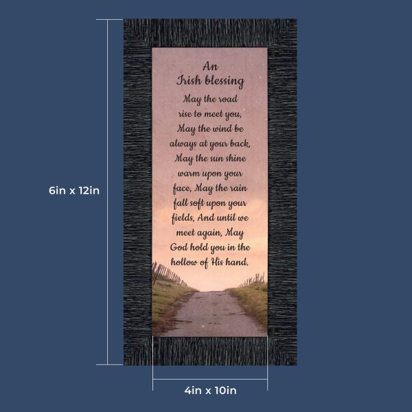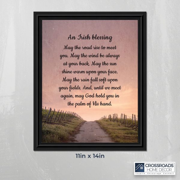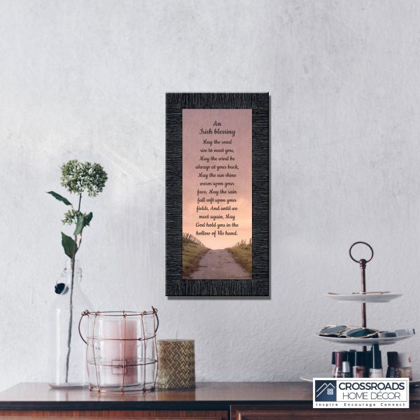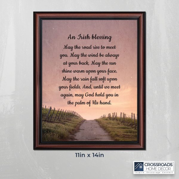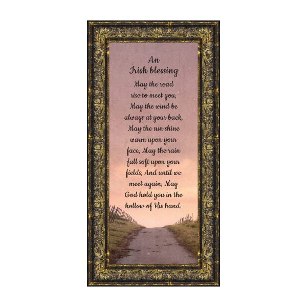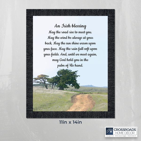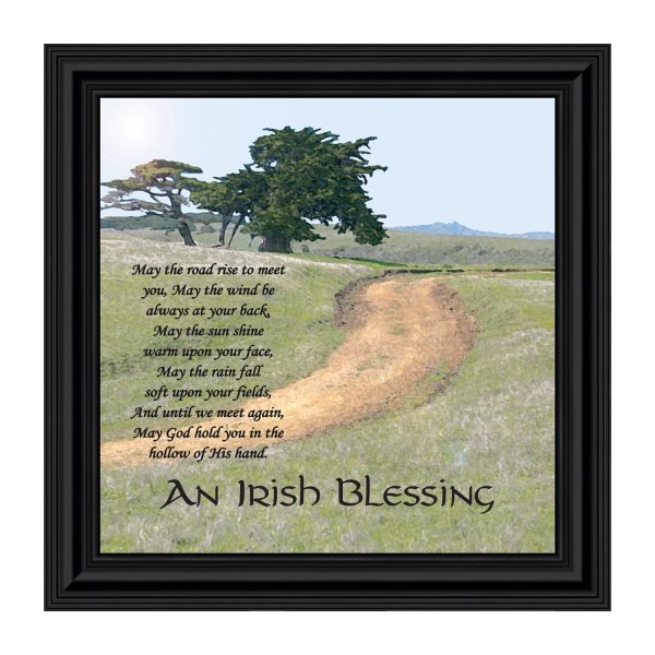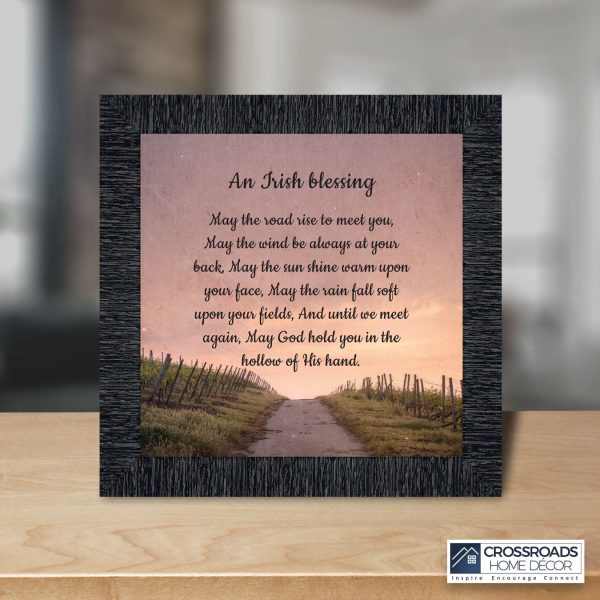 THE IRISH BLESSINGis a traditional Celtic poem passed down through the generations. The words portray the beauty of nature, wind, sun, and rain, to form the classic words of good wishes. It can be used for a wedding prayer or gift, home blessing for a new home gift, to say a sympathetic goodbye to a loved one, or a going-away present. This Irish decor can be used for any celebration as beautiful Christian home decor.