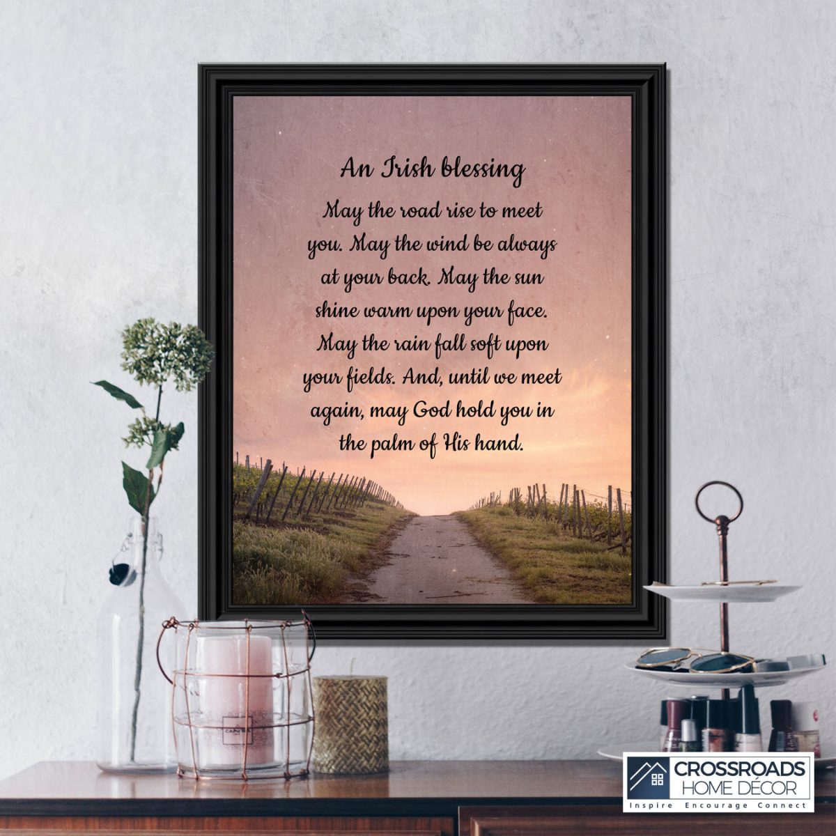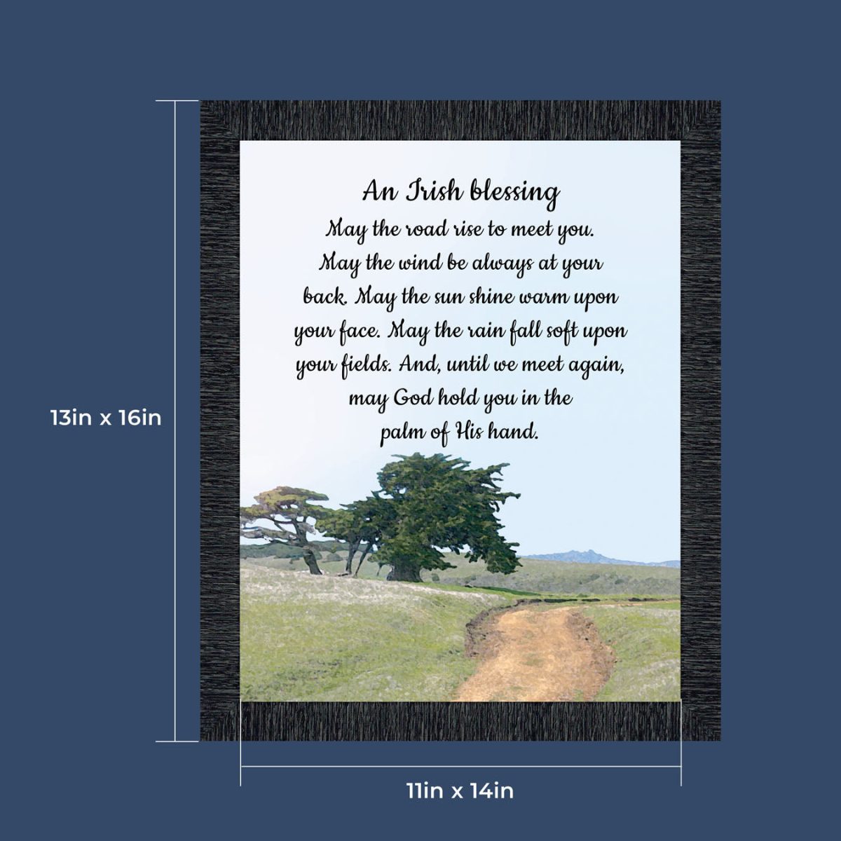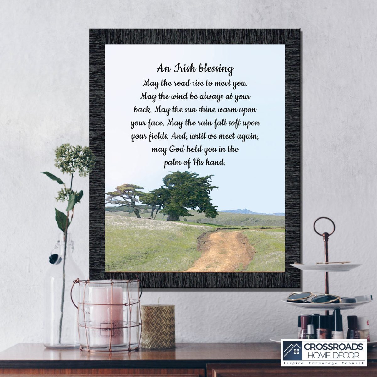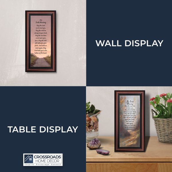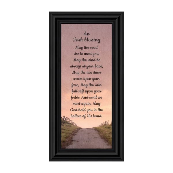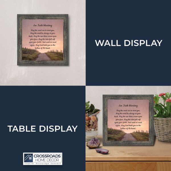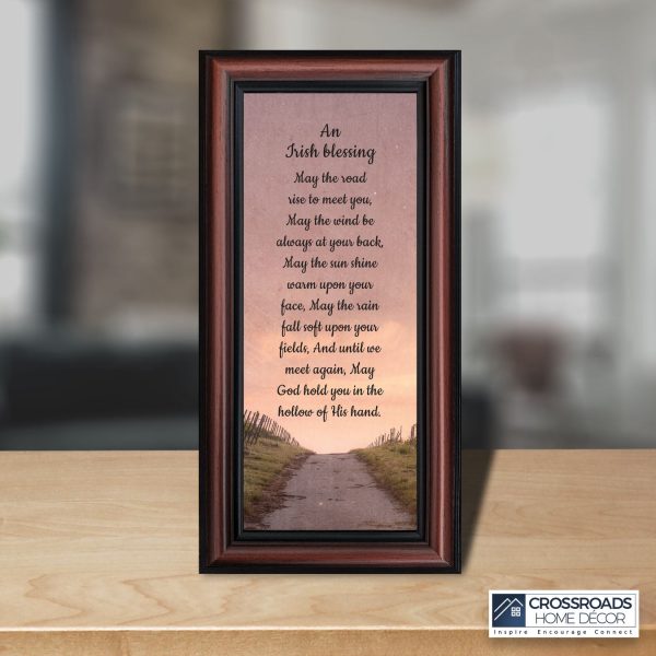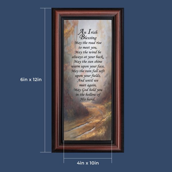 THE IRISH BLESSINGis a traditional Celtic poem passed down through the generations. The words portray the beauty of nature, wind, sun, and rain, to form the classic words of good wishes. It can be used for a wedding prayer or gift, home blessing for a new home gift, to say a sympathetic goodbye to a loved one, or a going-away present. This Irish decor can be used for any celebration as beautiful Christian home decor.