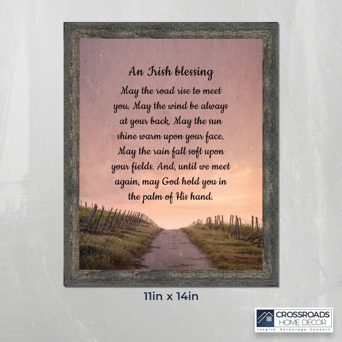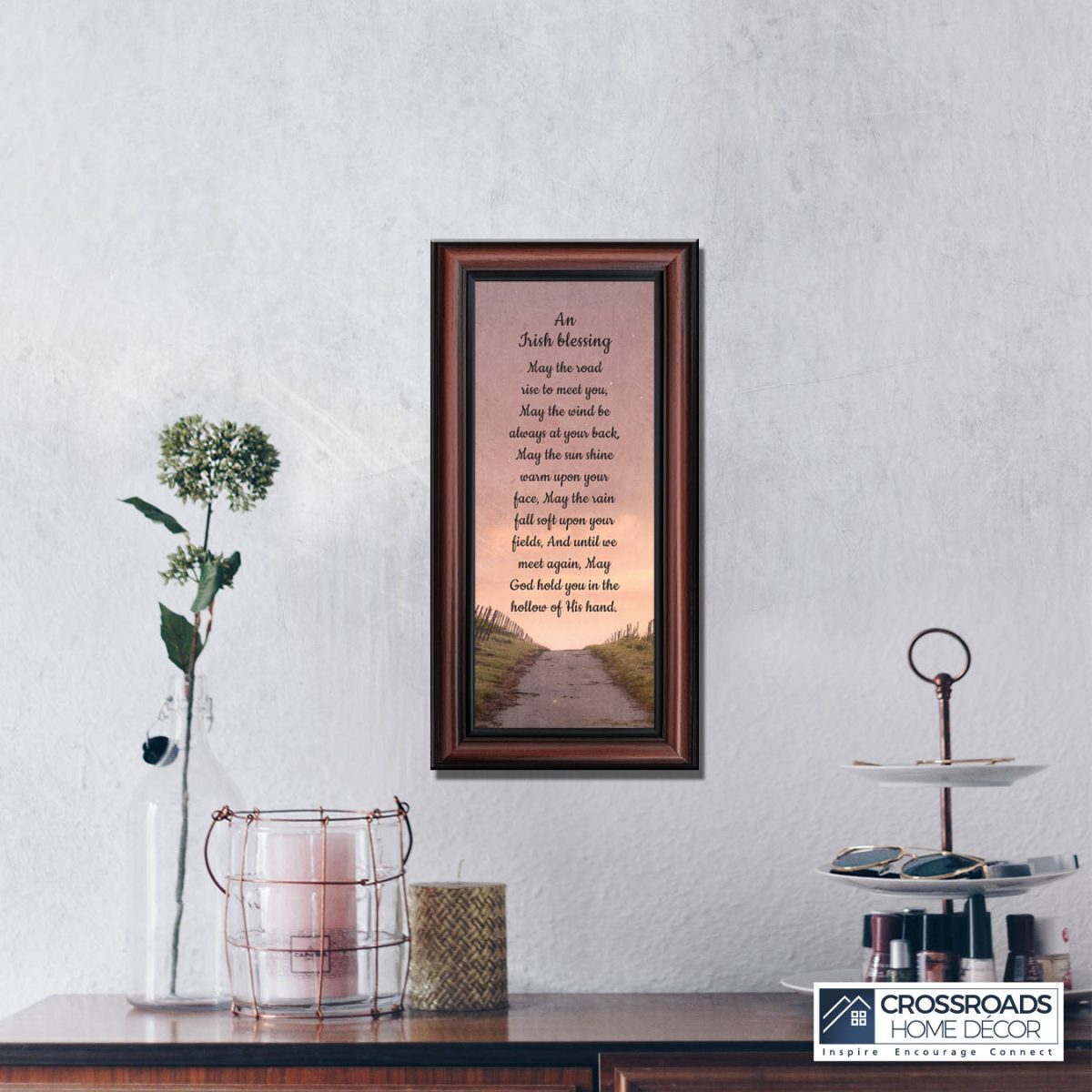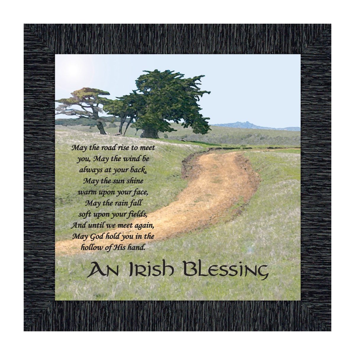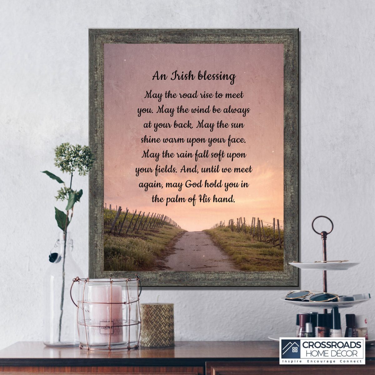 THE IRISH BLESSINGis a traditional Celtic poem passed down through the generations. The words portray the beauty of nature, wind, sun, and rain, to form the classic words of good wishes. It can be used for a wedding prayer or gift, home blessing for a new home gift, to say a sympathetic goodbye to a loved one, or a going-away present. This Irish decor can be used for any celebration as beautiful Christian home decor.
