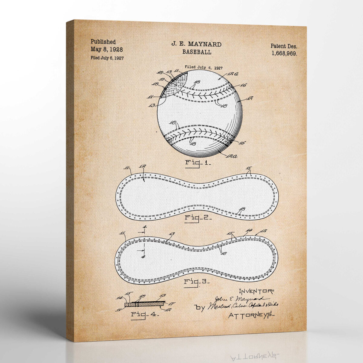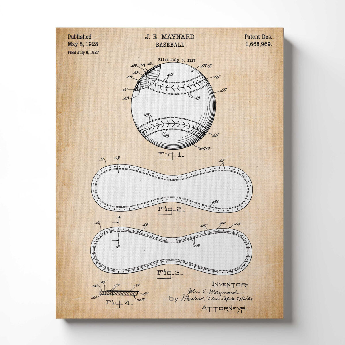 Baseball Decorations for Room, Baseball Patent Canvas Print, Ready To Hang for Living Room Home Wall Decor, C2313b