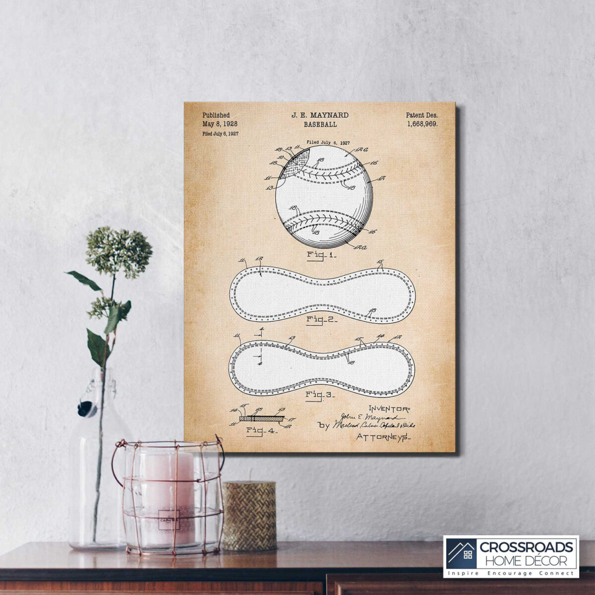 Crossroads Home Décor, Baseball Decorations for Room, Baseball Patent Canvas Print, Ready To Hang for Living Room Home Wall Decor