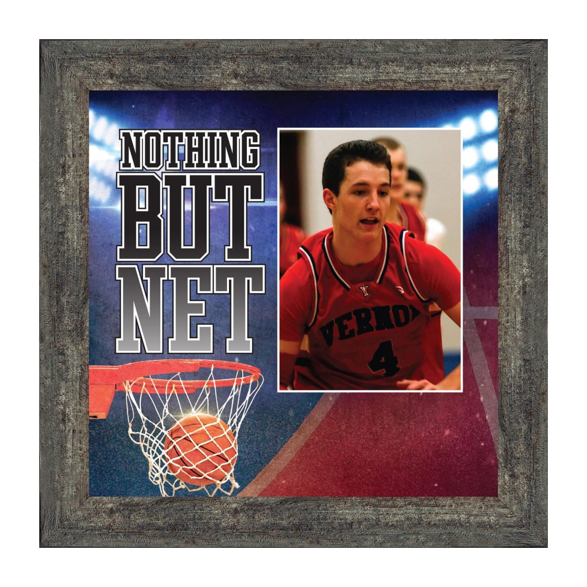 - Picture framed basketball photo with clever basketball saying.