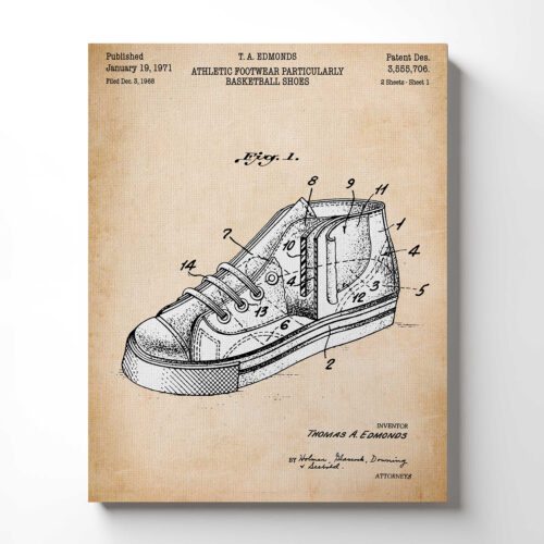 Basketball Posters for Boys Room, Patent Basketball Hoop Canvas Print, Ready To Hang for Living Room Home Wall Decor, C2344c