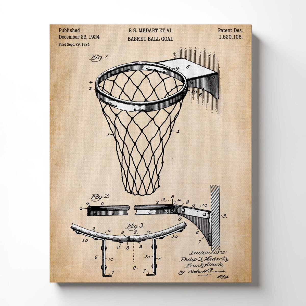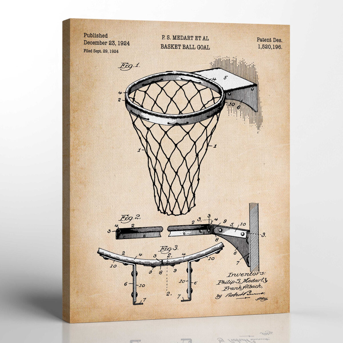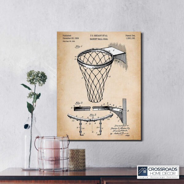 Crossroads Home Décor, Basketball Posters for Boys Room, Patent Basketball Hoop Canvas Print, Ready To Hang for Living Room Home Wall Decor