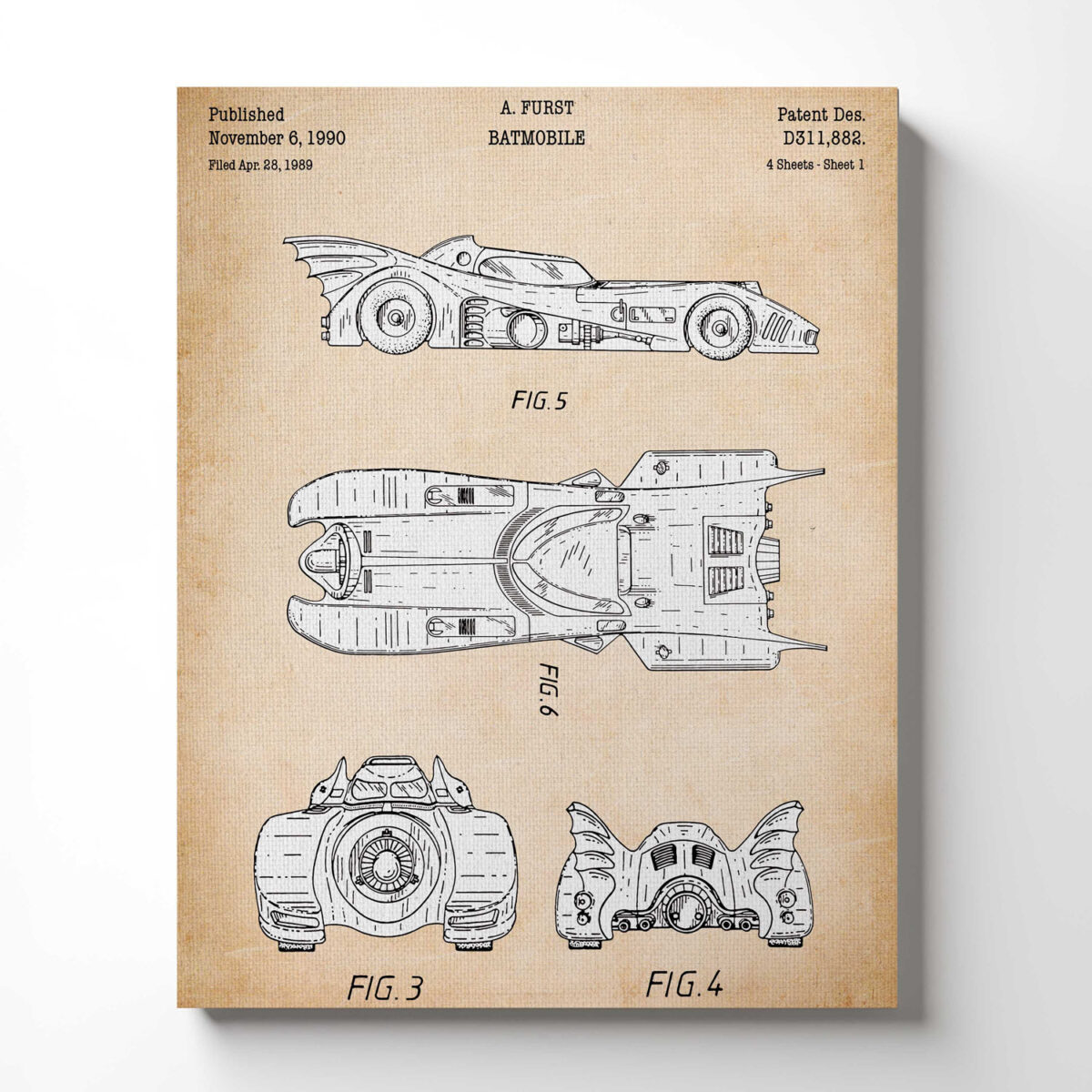 Batman Gifts for Men, batman Decor, Batmobile Patent Canvas Print , Ready To Hang for Living Room Home Wall Decor, C2502