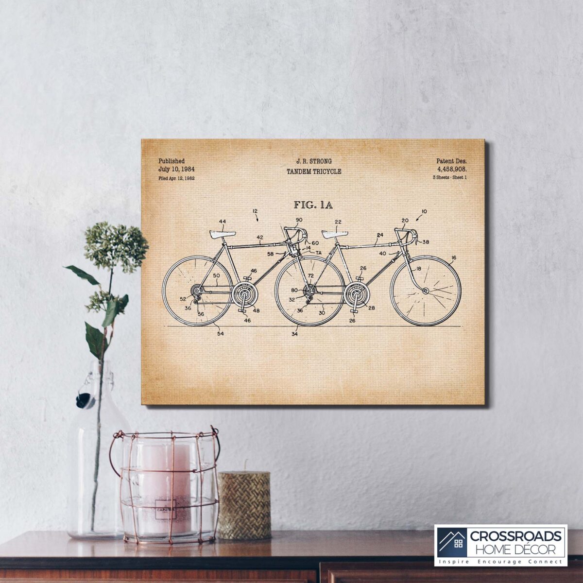 Crossroads Home Décor Bicycle Rider Gifts, Bike Decor, Bicycle Patent Canvas Print, Ready To Hang for Living Room Home Wall Decor