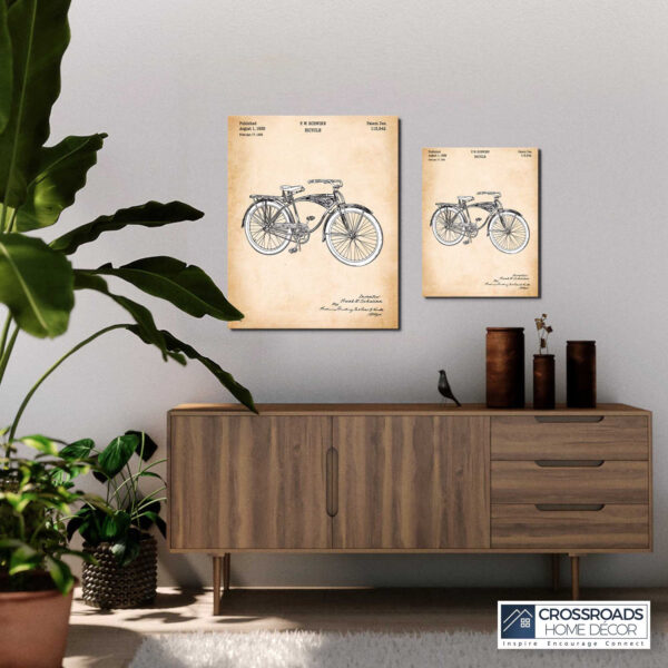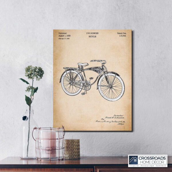 Crossroads Home Décor, Biking Gifts, Gifts for Bicycle Enthusiasts, Schwinn Bike Patent Canvas Print, Ready To Hang for Living Room Home Wall Decor