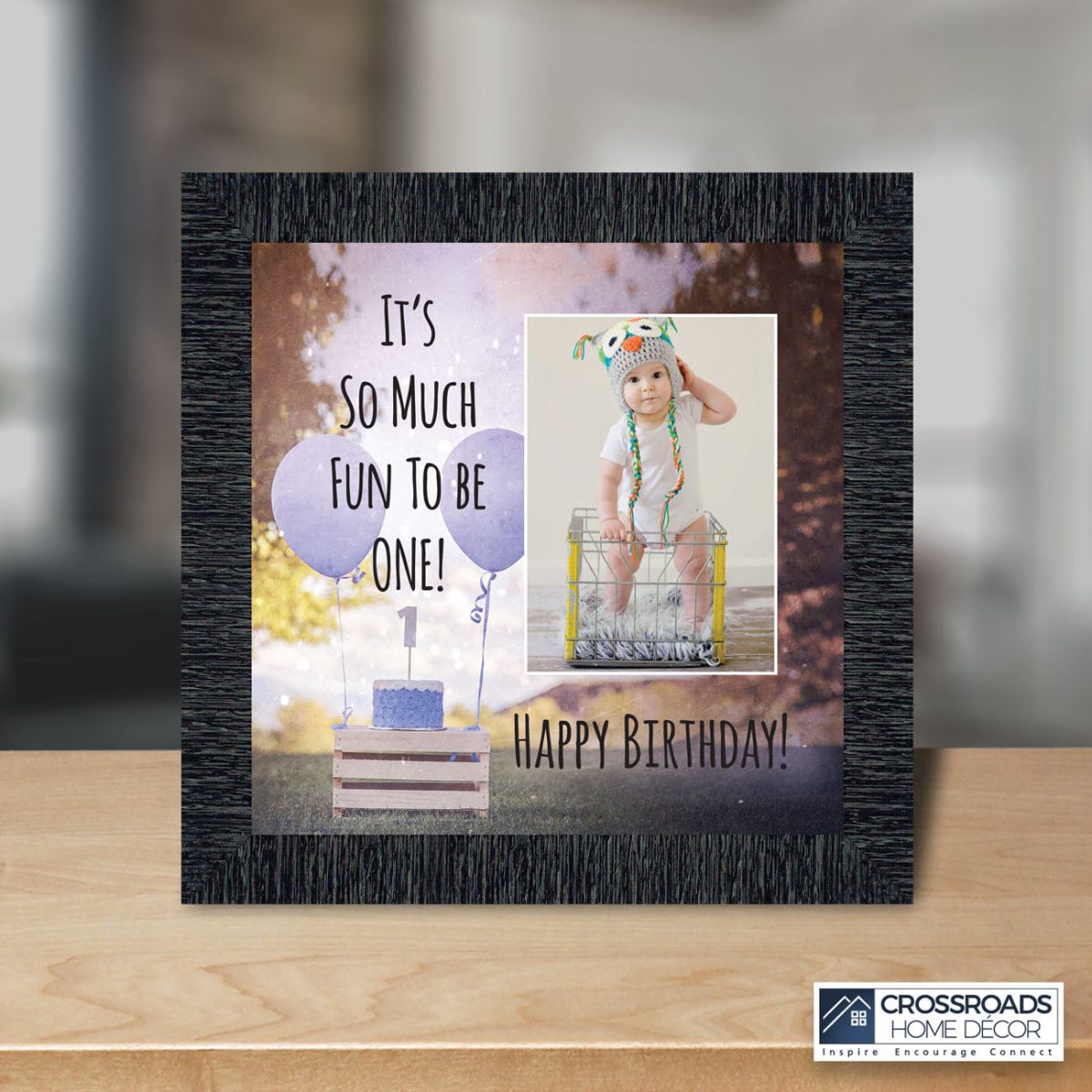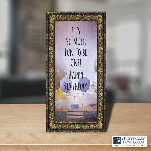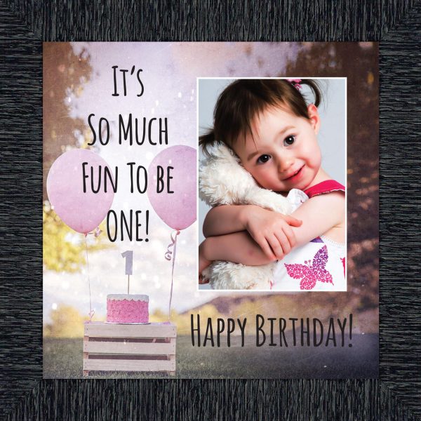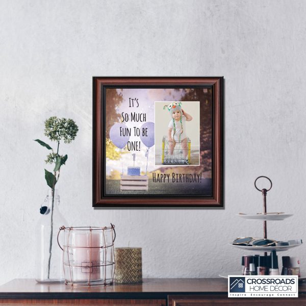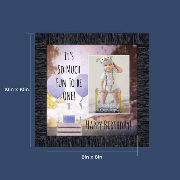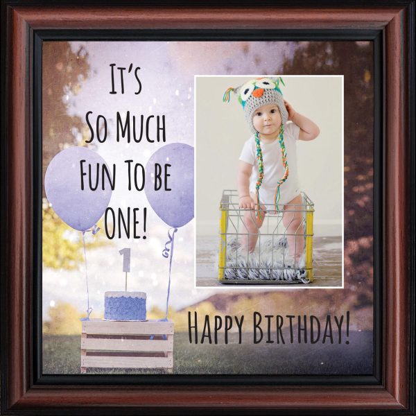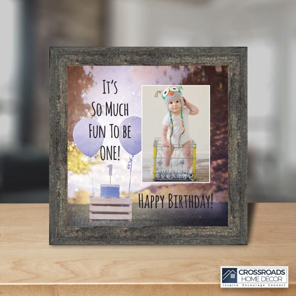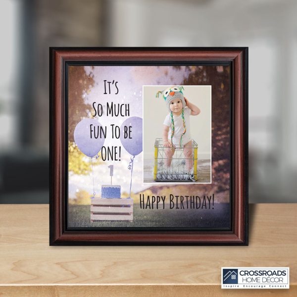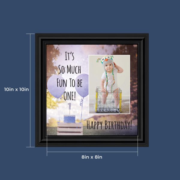 - Picture frame celebrating a baby boy’s first birthday. Great to use as a table decoration at the 1st birthday party and then add a picture to remember the fun day.